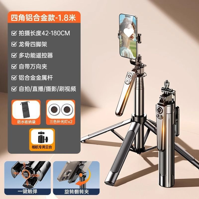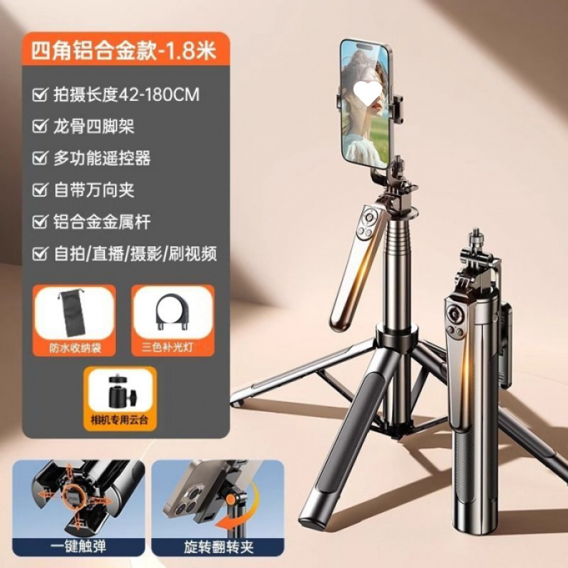 • 신형 [5축-팬틸트 폴] 버튼 터치*초 삼각대 오픈-더블 소형 램프 모델[1.8m] 다기능 리모콘*안정적인 4개의 다리