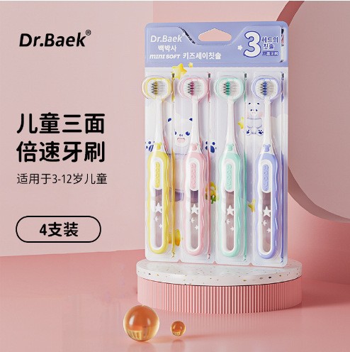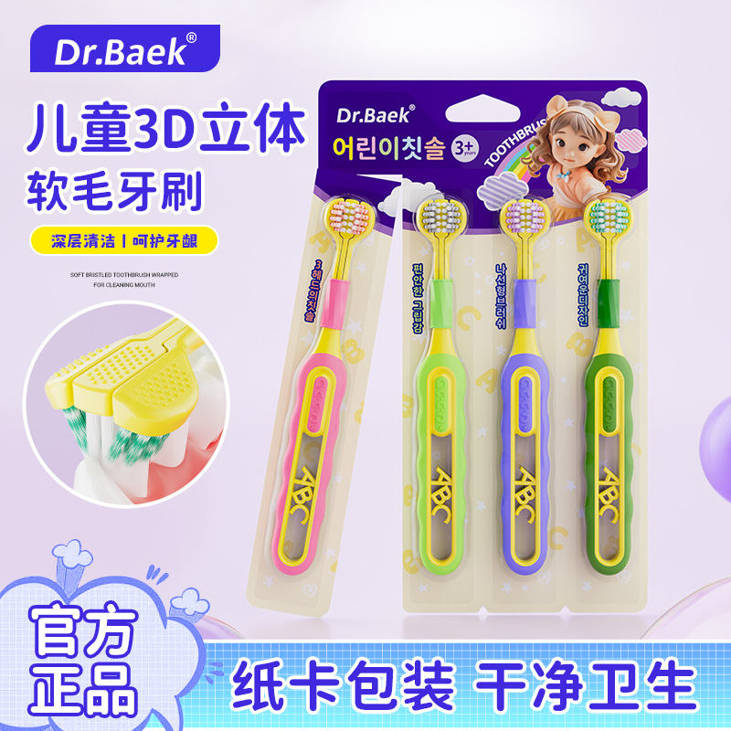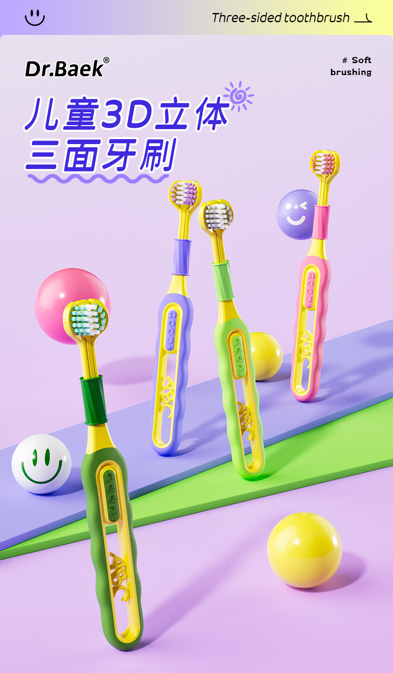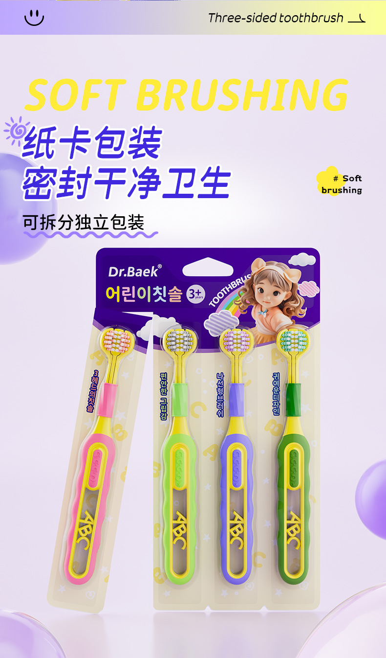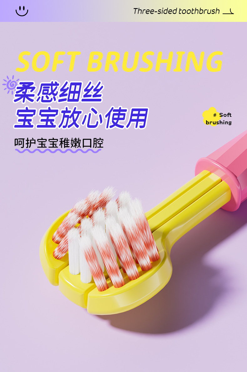 C단계 인기 어린이칫솔, 3면칫솔, 부드러운모, 완전포장, 청소 및 잇몸보호, 어린이용 3D 입체 3면칫솔스토어 가기