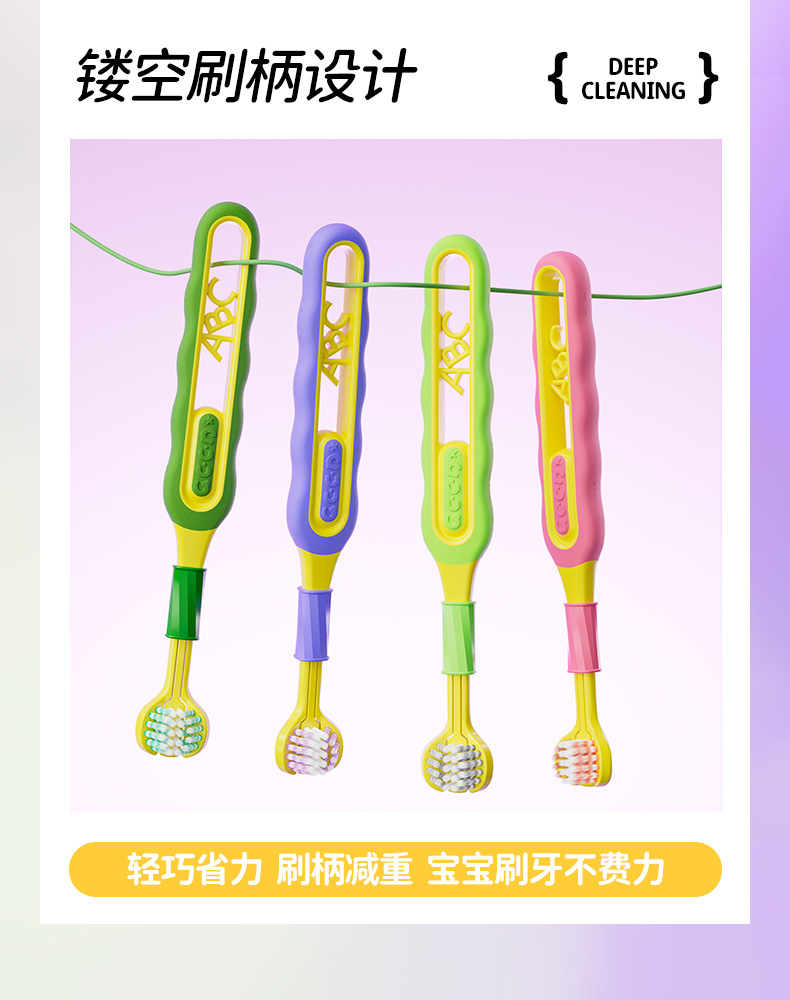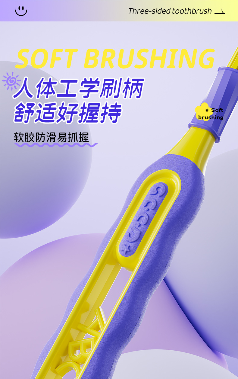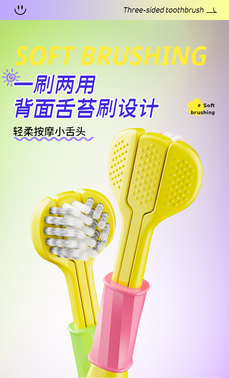 C단계 인기 어린이칫솔, 3면칫솔, 부드러운모, 완전포장, 청소 및 잇몸보호, 어린이용 3D 입체 3면칫솔