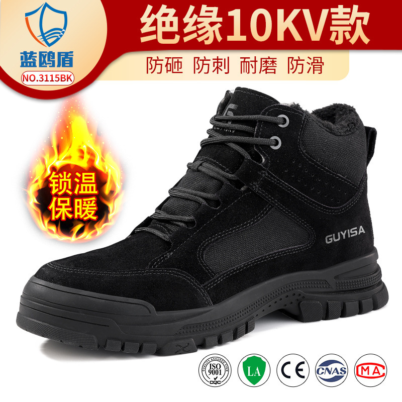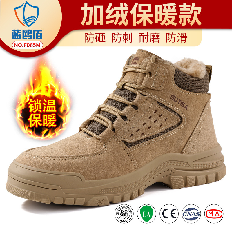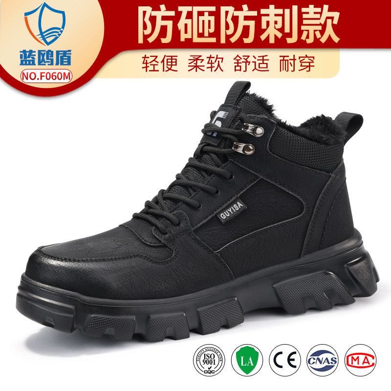 Blue Gull Shield 겨울 노동 보호 신발, 스매싱 방지 및 펑크 방지 하이탑 내마모성 신발, 안전하고 편안하며 따뜻하고 내마모성 작업 신발