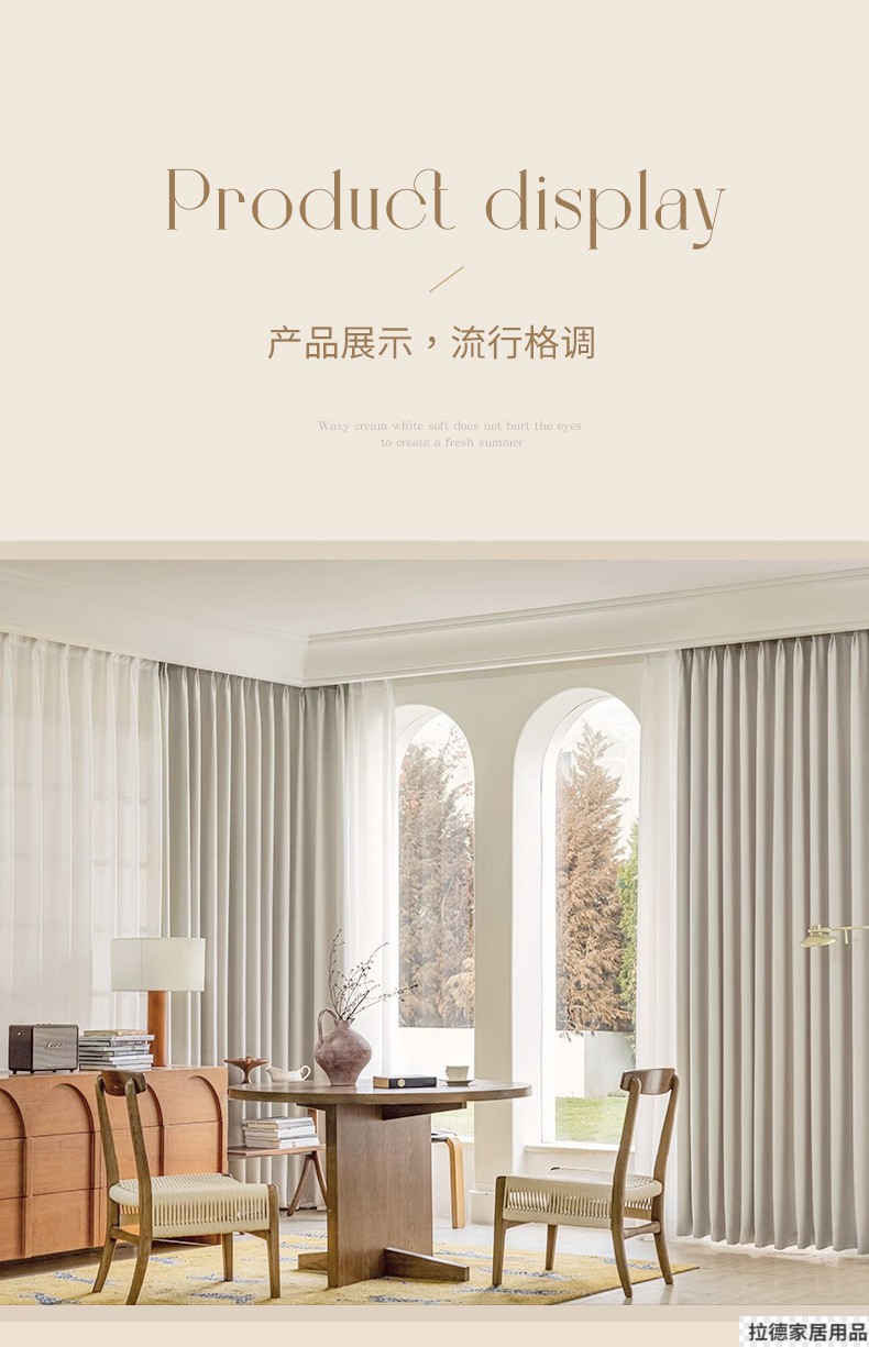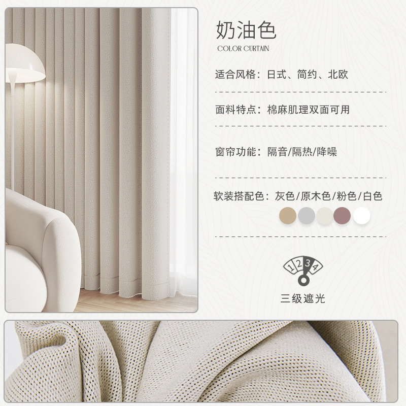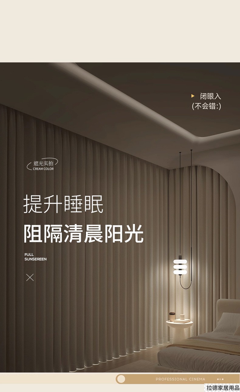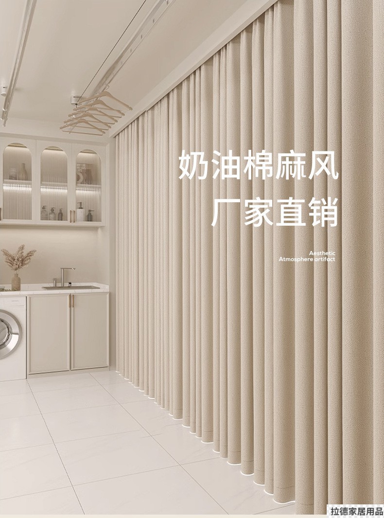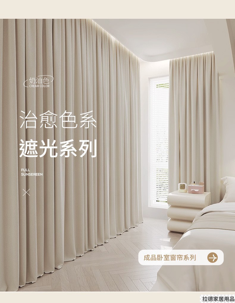 침실용 러닝 빌리지 암막 커튼, 크림 스타일, 펀치 없는 설치 커튼, 완제품, 임대용 소형 커튼스토어 가기