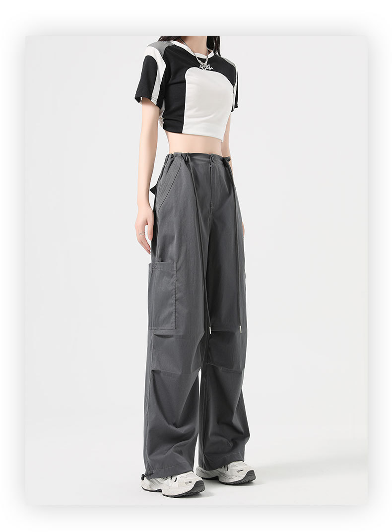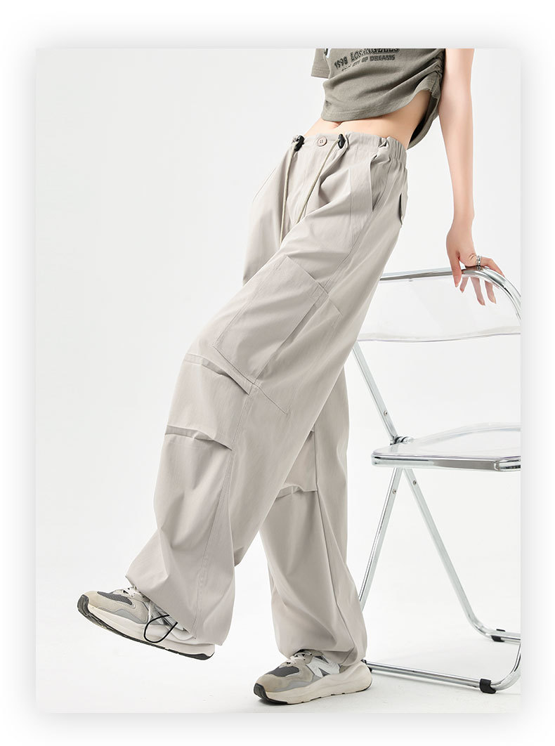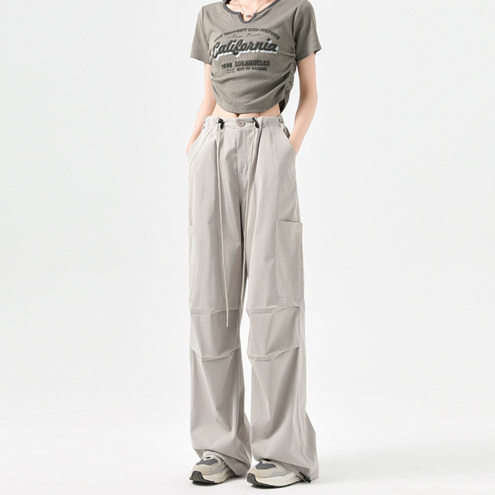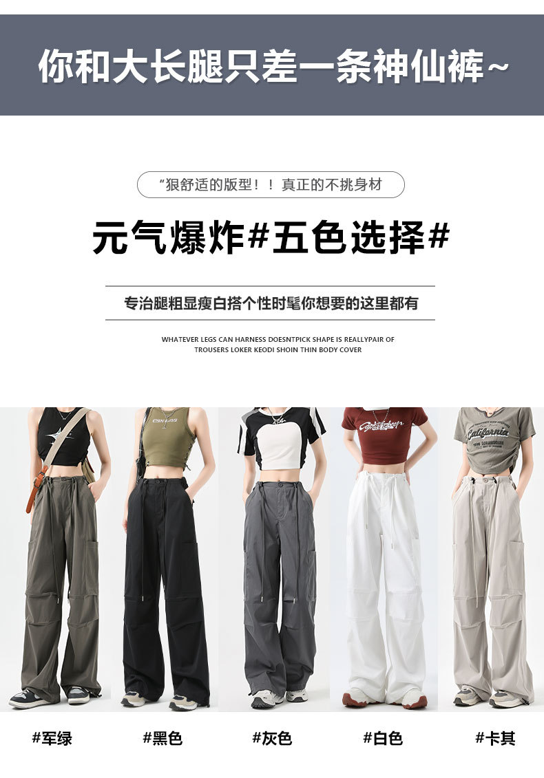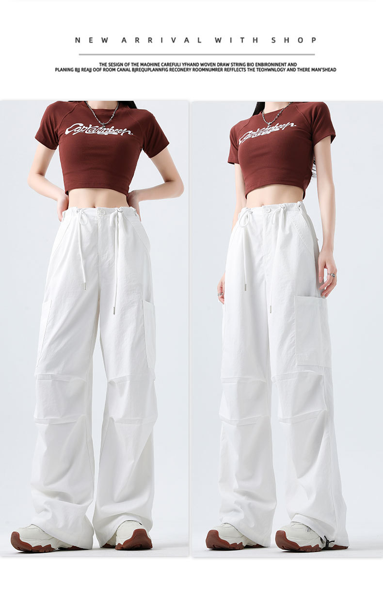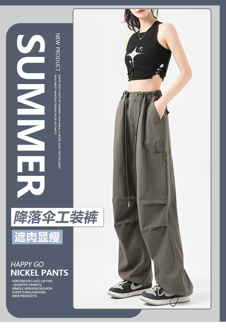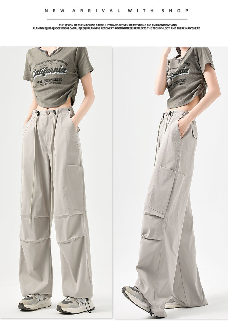 여성용 작업복 하이 웨이스트 와이드 레그 스트레이트 여름 2025 뉴 아메리칸 레트로 하이킹 스포츠 바지 속건성 포켓스토어 가기