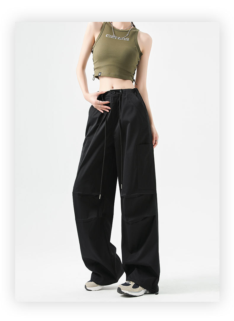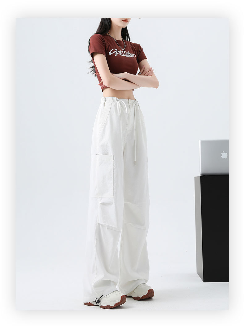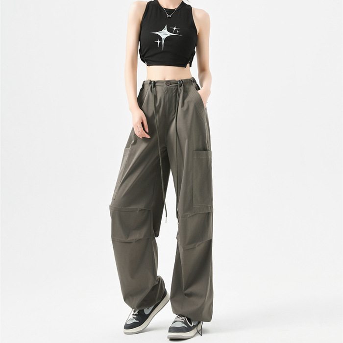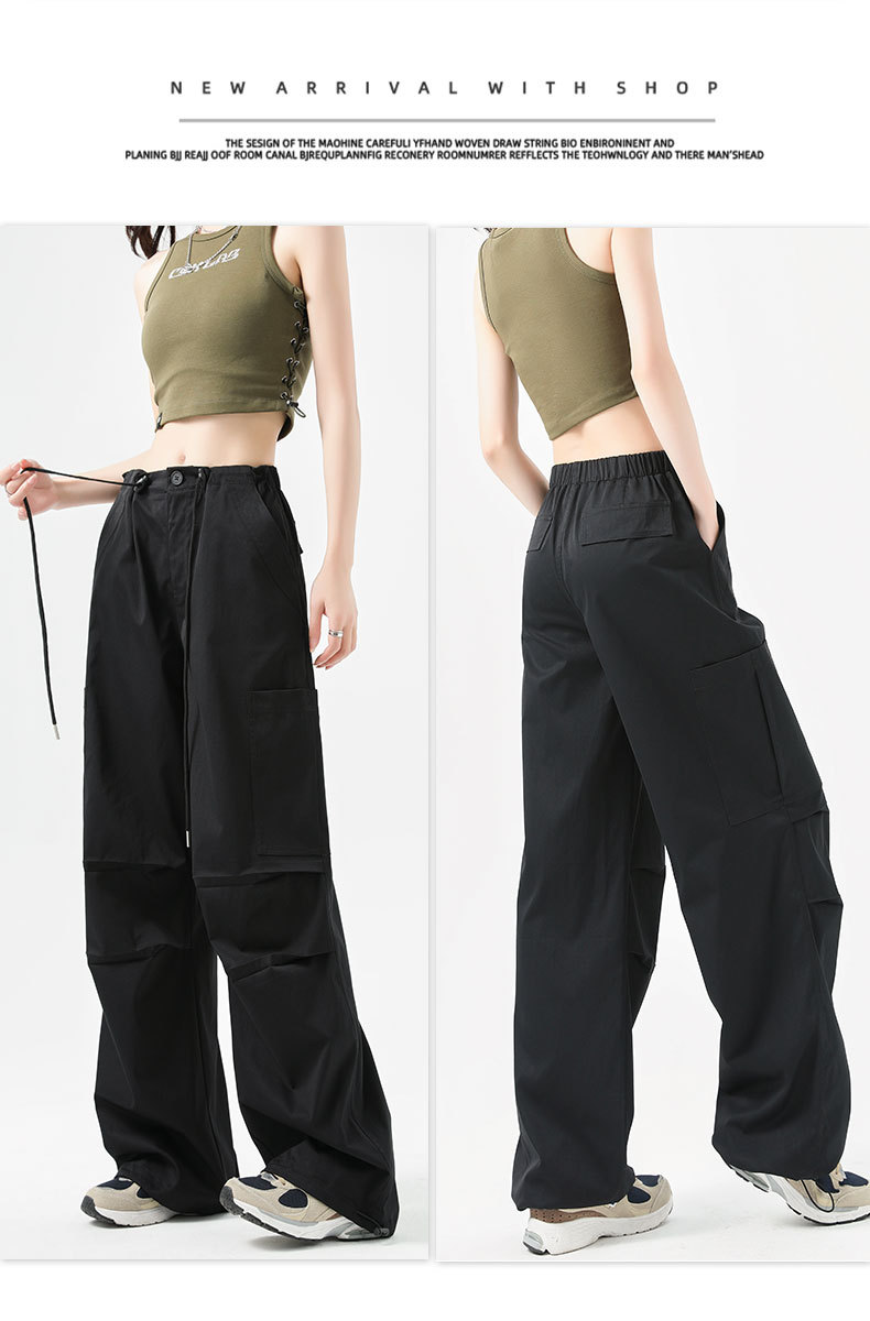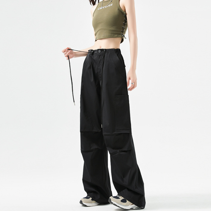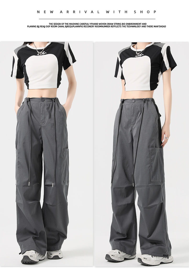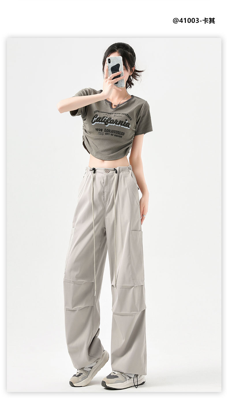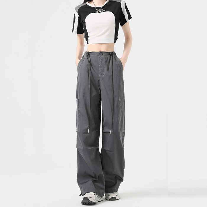 여성용 작업복 하이 웨이스트 와이드 레그 스트레이트 여름 2025 뉴 아메리칸 레트로 하이킹 스포츠 바지 속건성 포켓스토어 가기