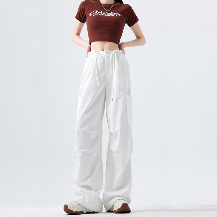 여성용 작업복 하이 웨이스트 와이드 레그 스트레이트 여름 2025 뉴 아메리칸 레트로 하이킹 스포츠 바지 속건성 포켓