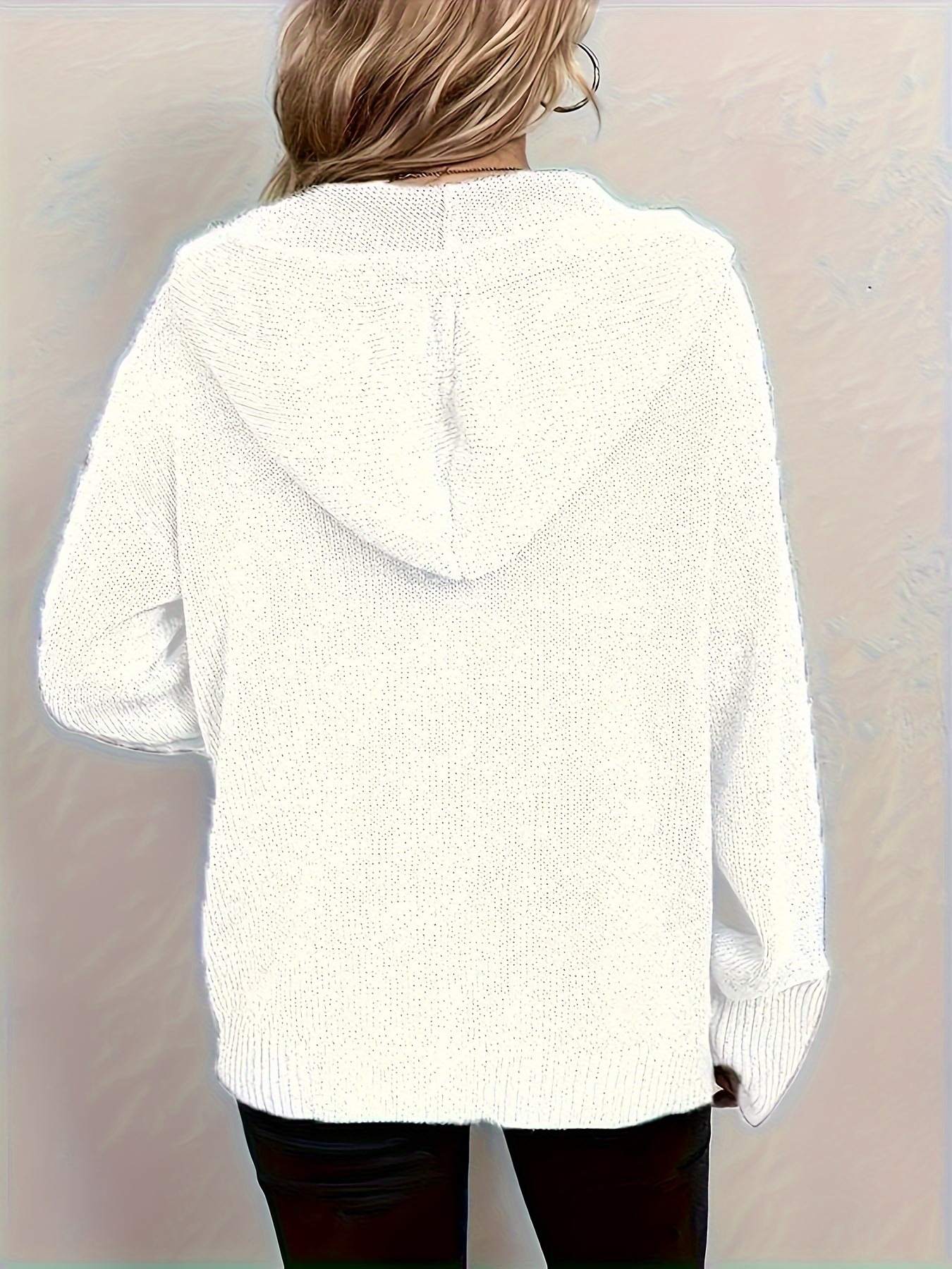 긴 소매 단색 니트 드로스트링 후드 캐주얼