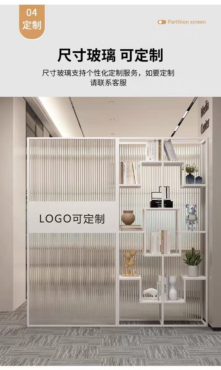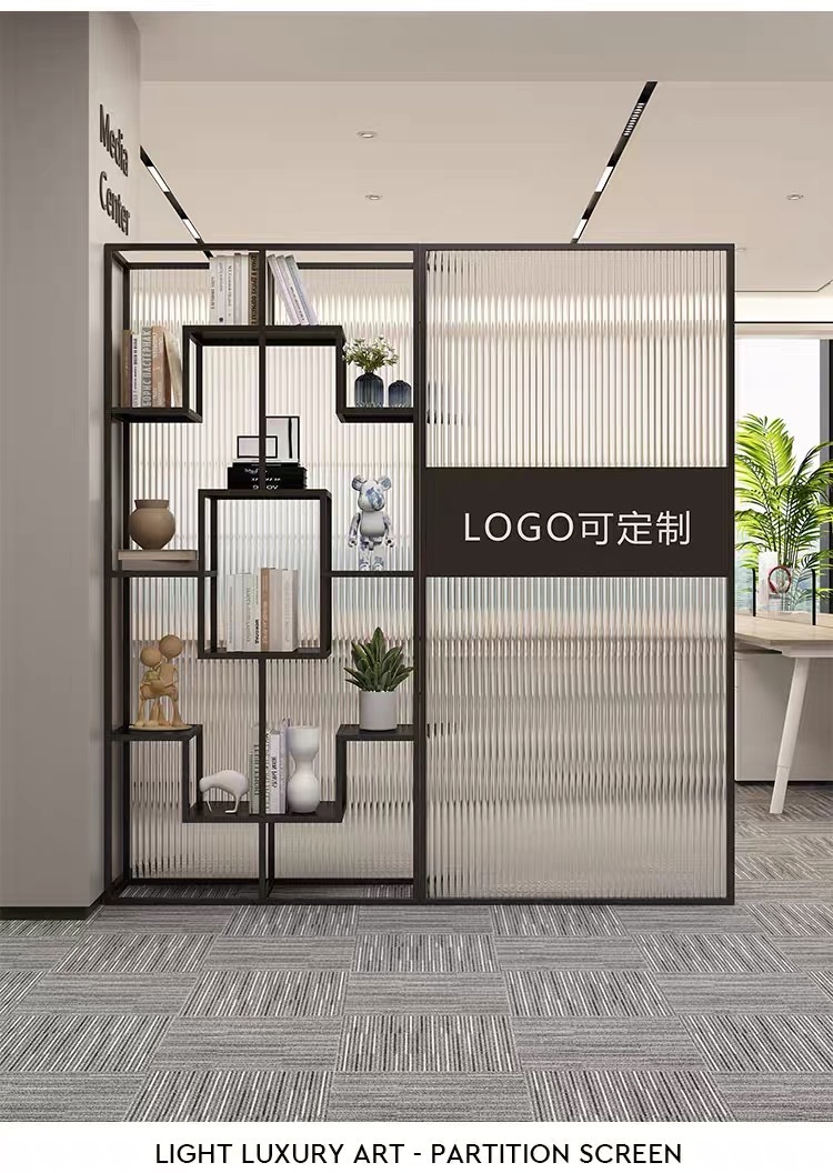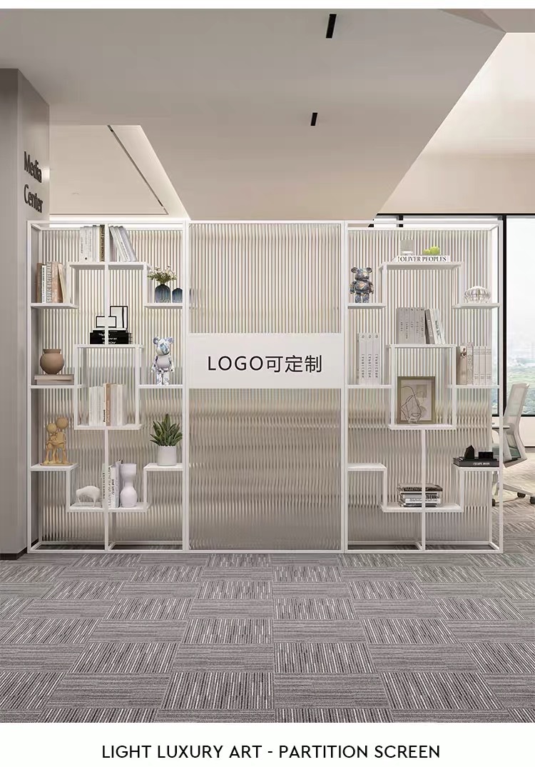 회사 프론트 데스크 로고 철 유리 파티션 디스플레이 랙 사무실 파티션 스크린 전시장 이미지 벽 스토리지 랙