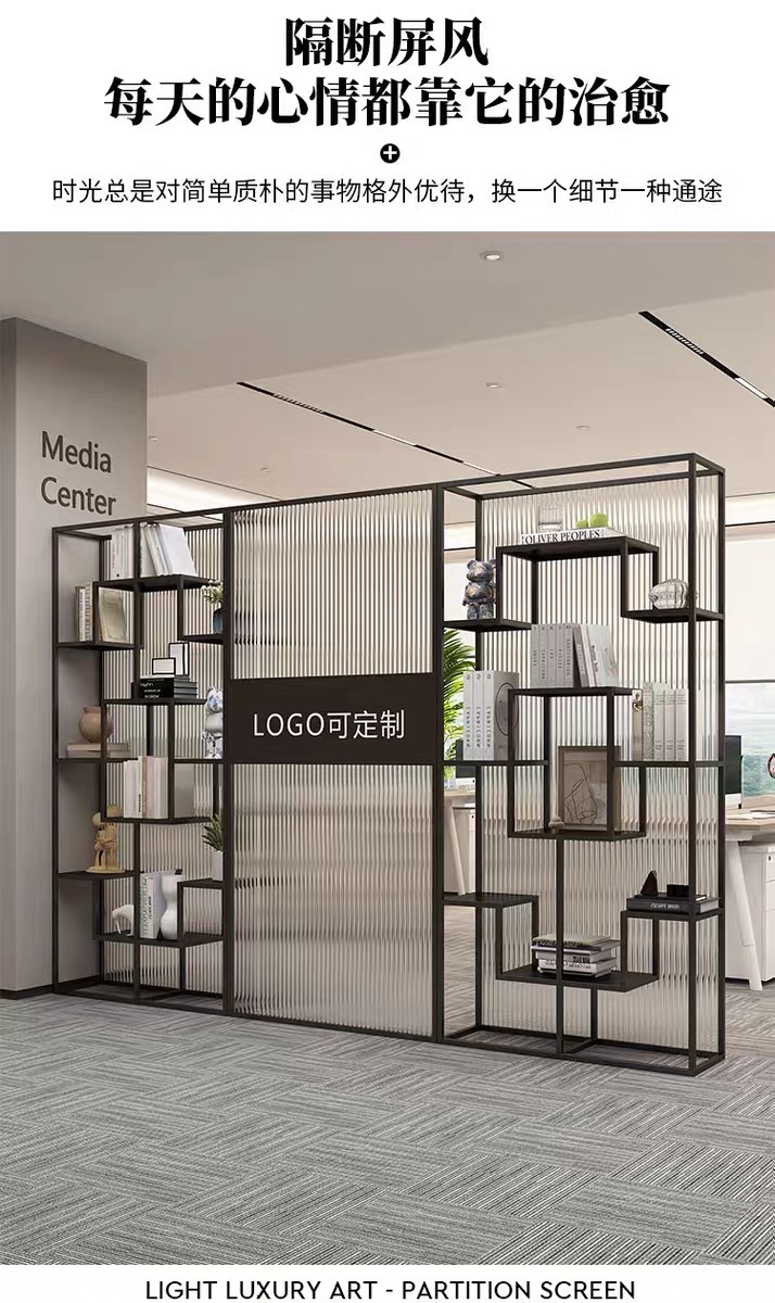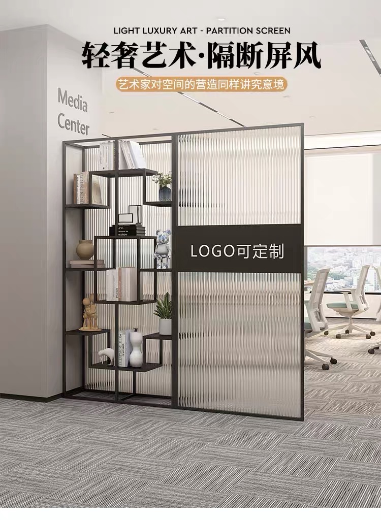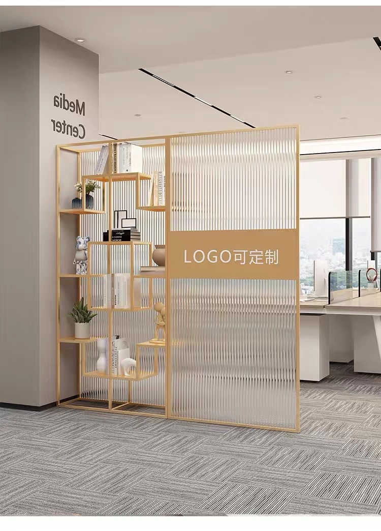 회사 프론트 데스크 로고 철 유리 파티션 디스플레이 랙 사무실 파티션 스크린 전시장 이미지 벽 스토리지 랙스토어 가기
