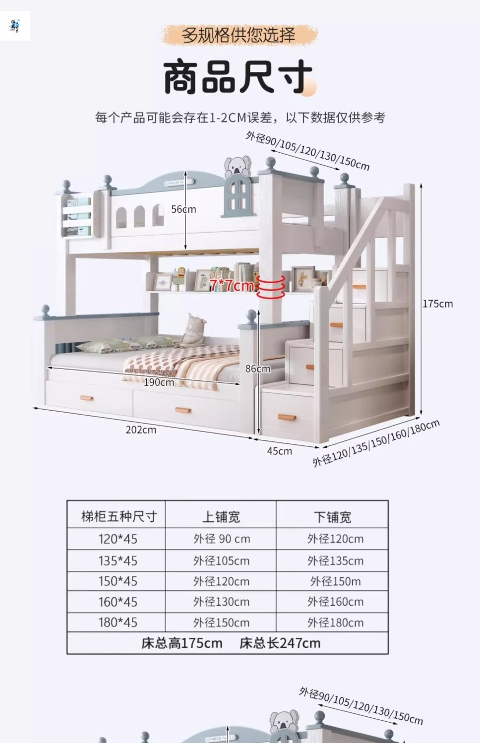 • 품질 - 사다리 캐비닛 상단 90cm, 하단 120cm [5cm 매트 2개 포함]