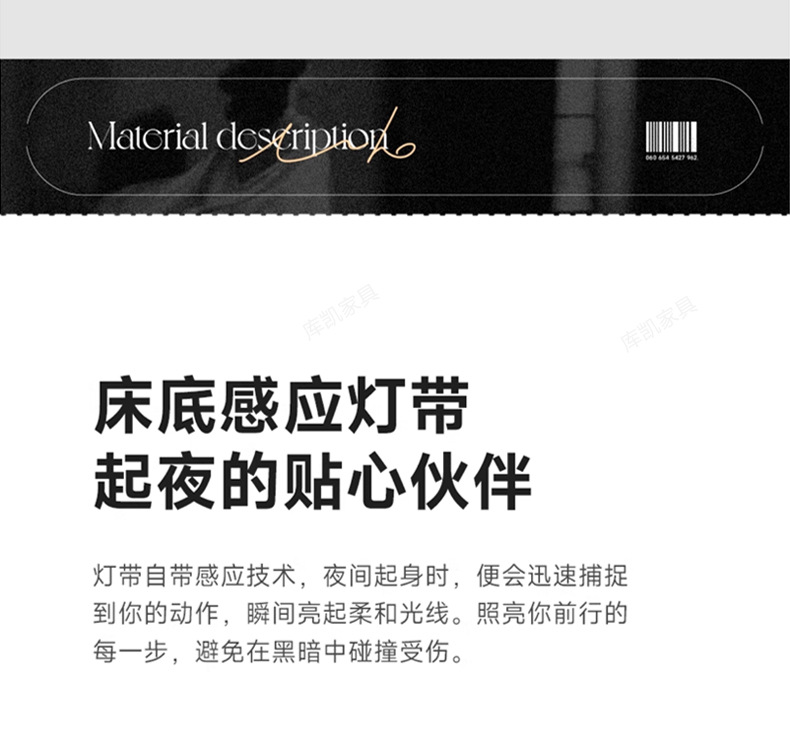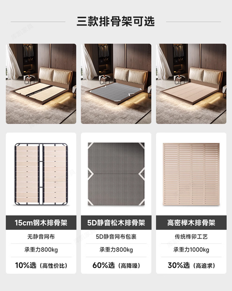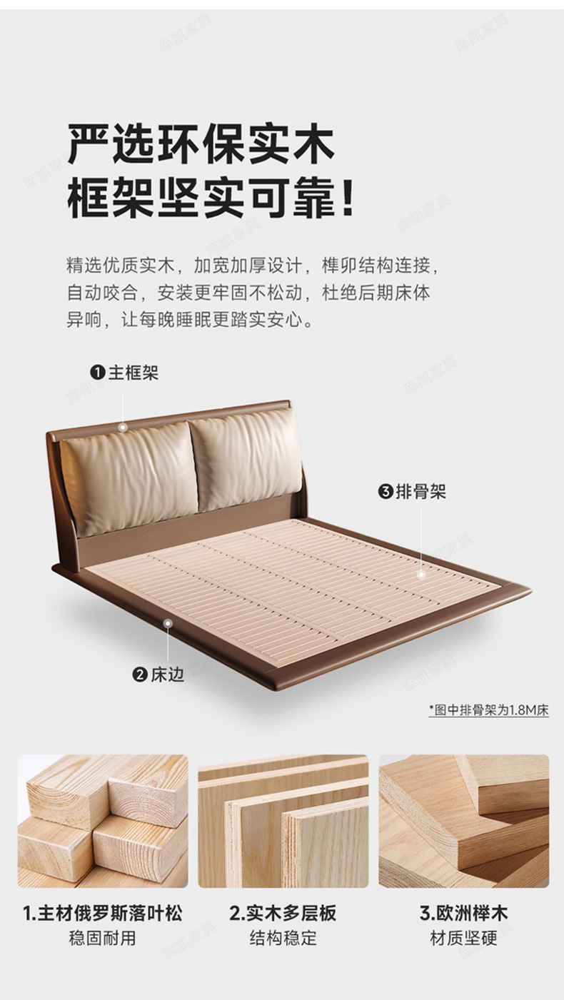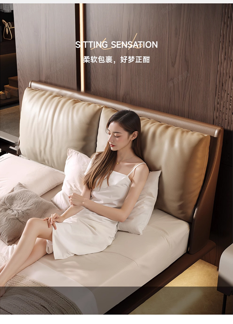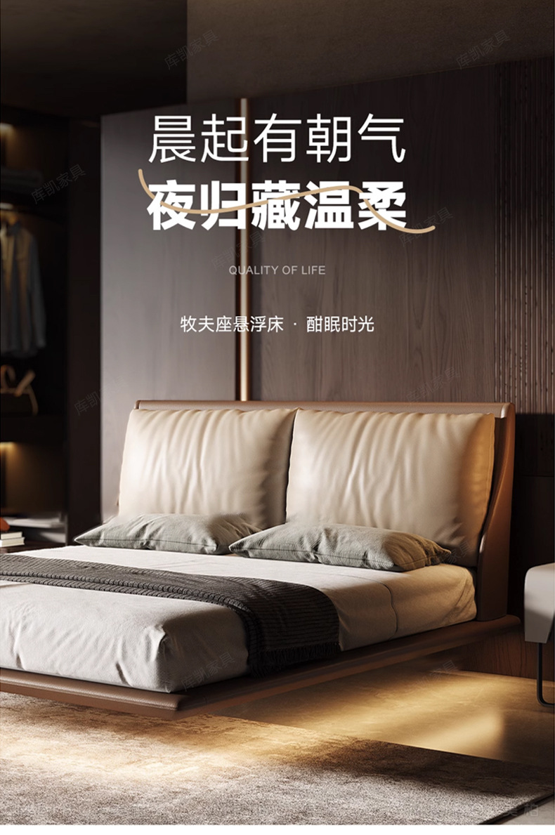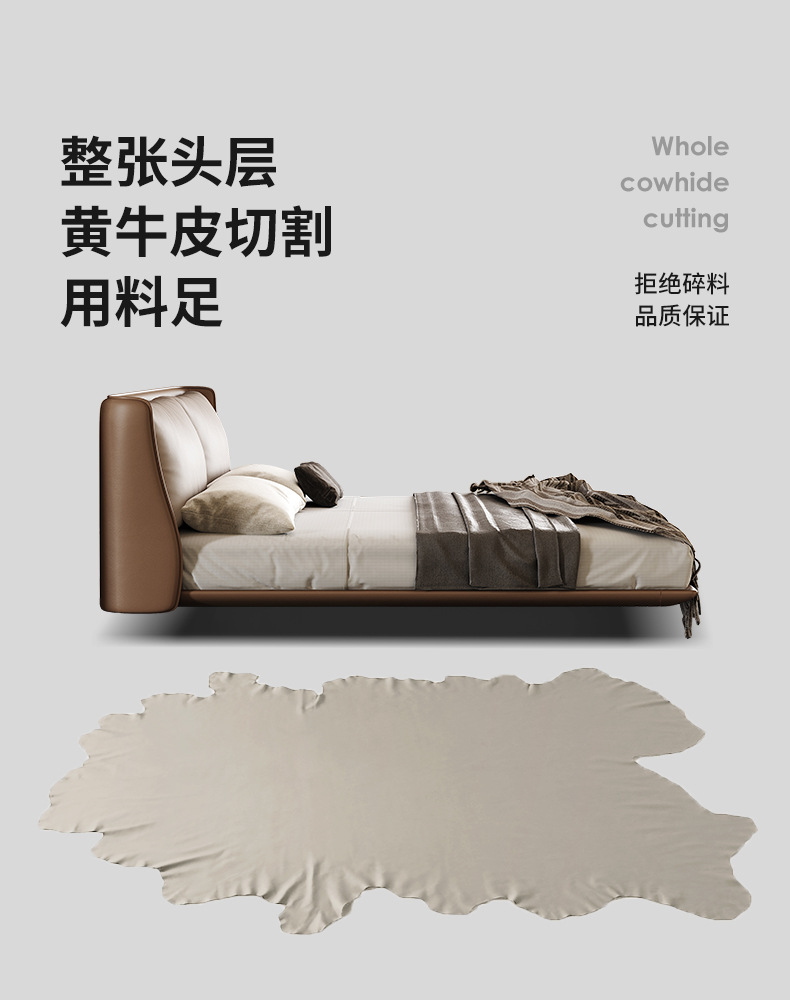 KuKai 이탈리아 미니멀리스트 1층 소가죽 침대 침실 홈 서스펜션 더블 소프트 가죽 아트 웨딩 침대 조명 포함