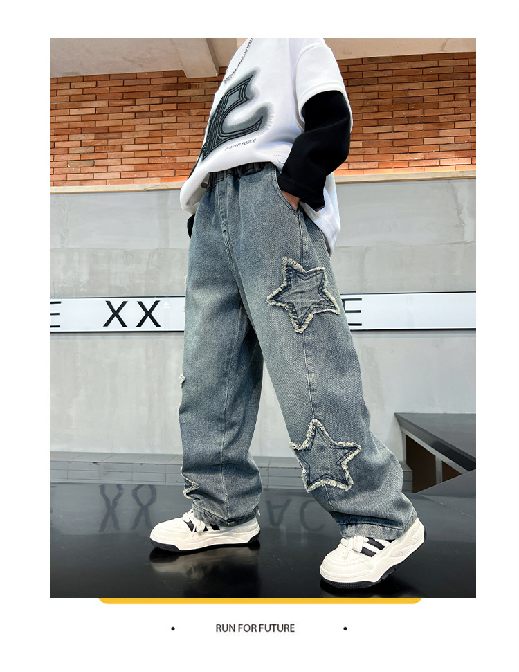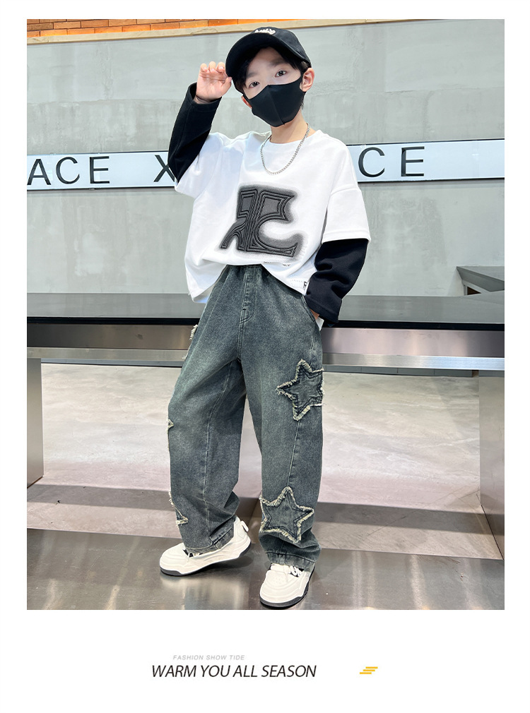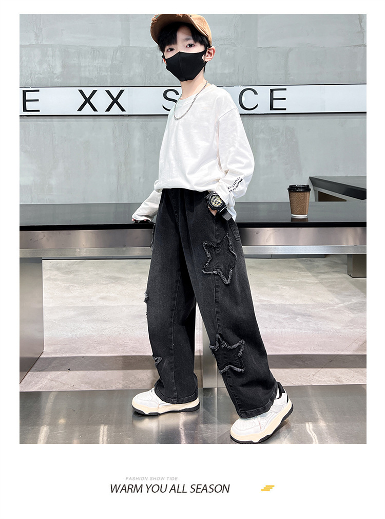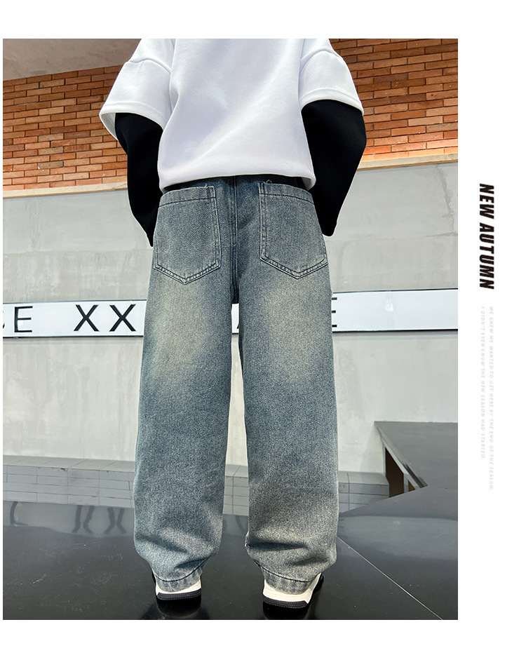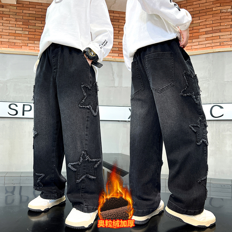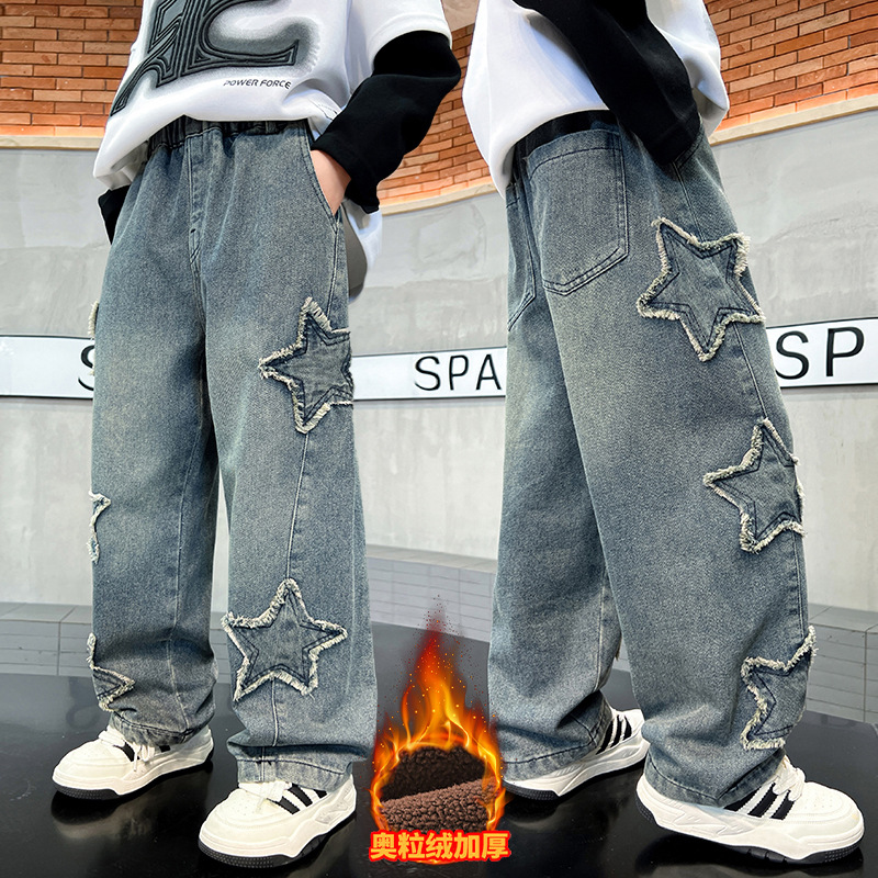 남아용 바지 가을 겨울 2025 신상 남아용 겨울 올인원 벨벳 와이드 팬츠, 중대형 아동용 벨벳 청바지 트렌디스토어 가기