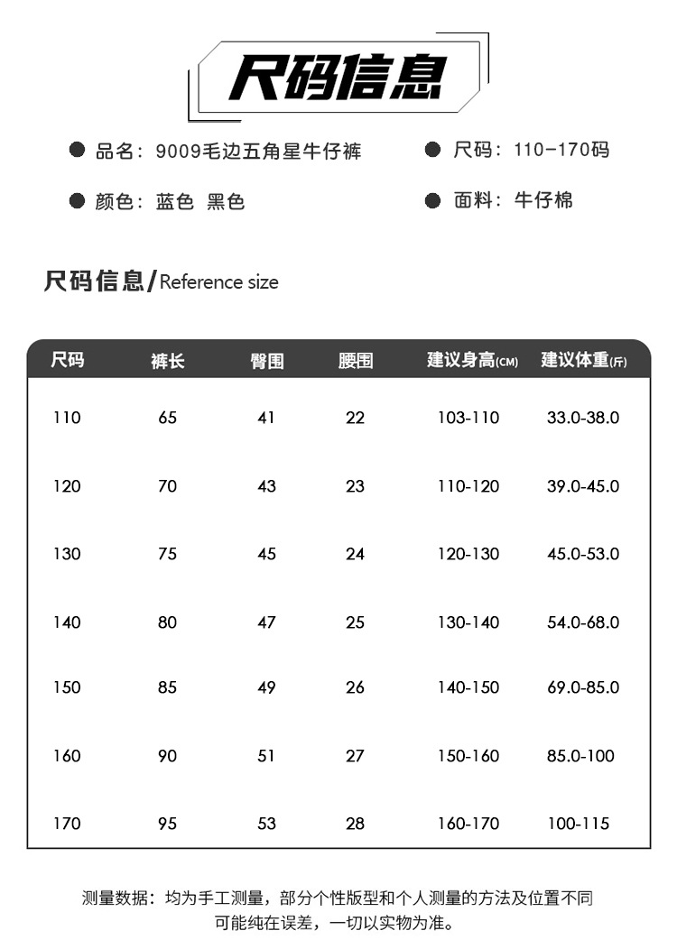 尺码推荐表