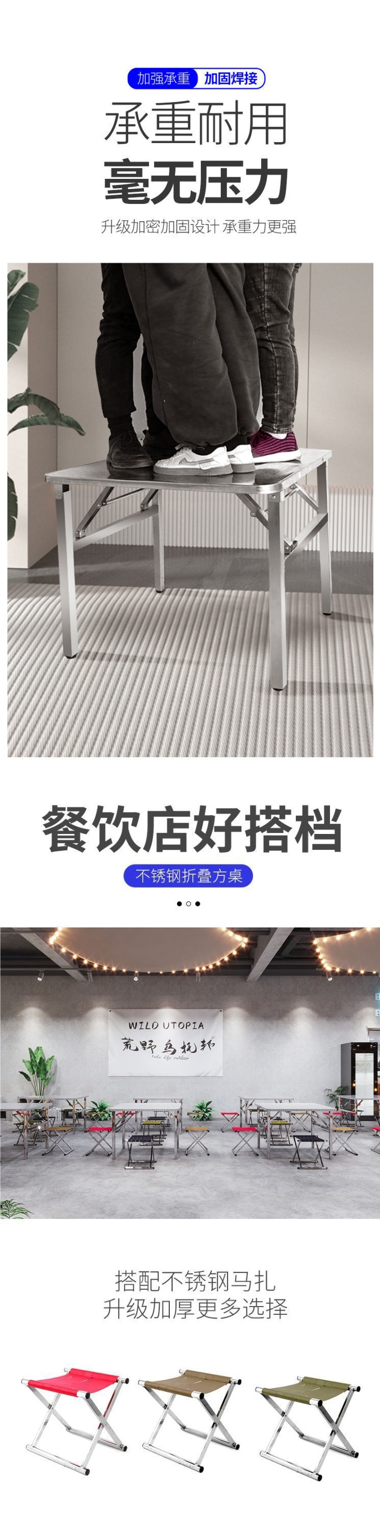 두꺼운 스테인레스 스틸 접이식 테이블, 휴대용 바베큐 테이블, 야외 노점 야시장 간단한 식탁, 둥근 모서리 작은 사각형 테이블스토어 가기