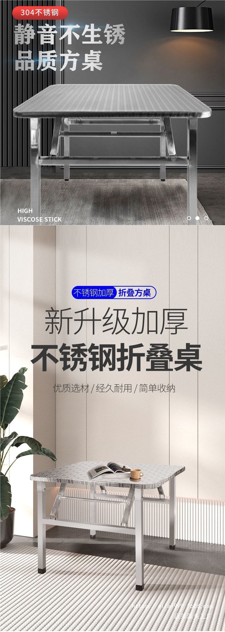 두꺼운 스테인레스 스틸 접이식 테이블, 휴대용 바베큐 테이블, 야외 노점 야시장 간단한 식탁, 둥근 모서리 작은 사각형 테이블