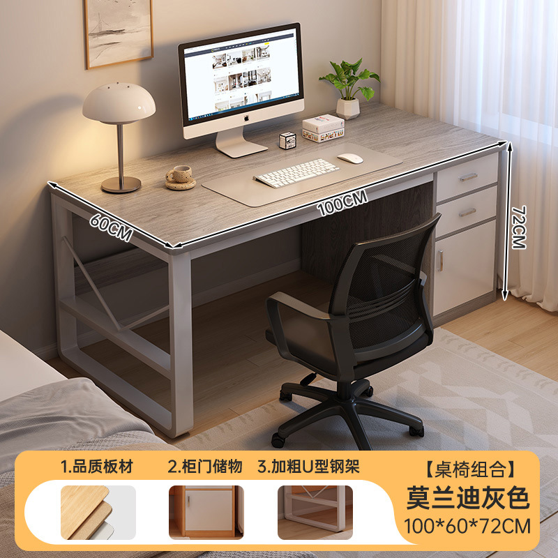 • [테이블과 의자 콤비네이션] 100CM 모란디 그레이 (서랍 2개, 수납장 1개)