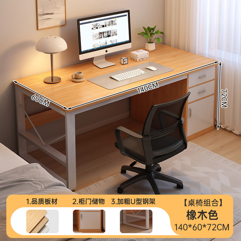 • [테이블과 의자 콤비네이션] 140CM 오크색상 (서랍 2개, 수납장 1개)