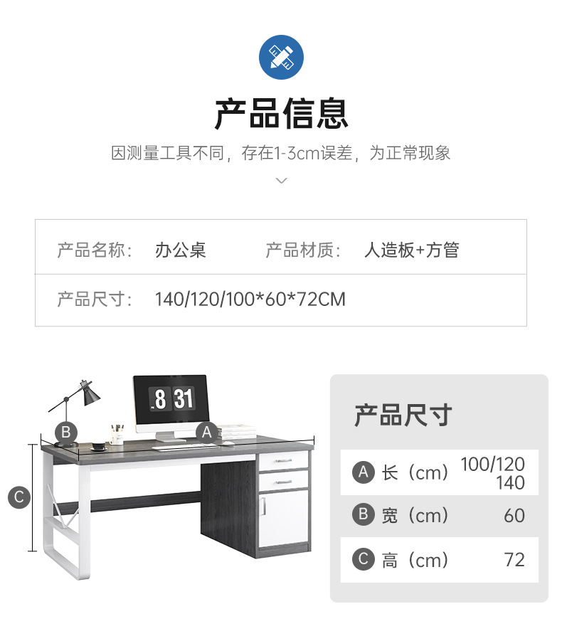 • [서랍 2개, 수납장 1개] 120*60CM 오크색상