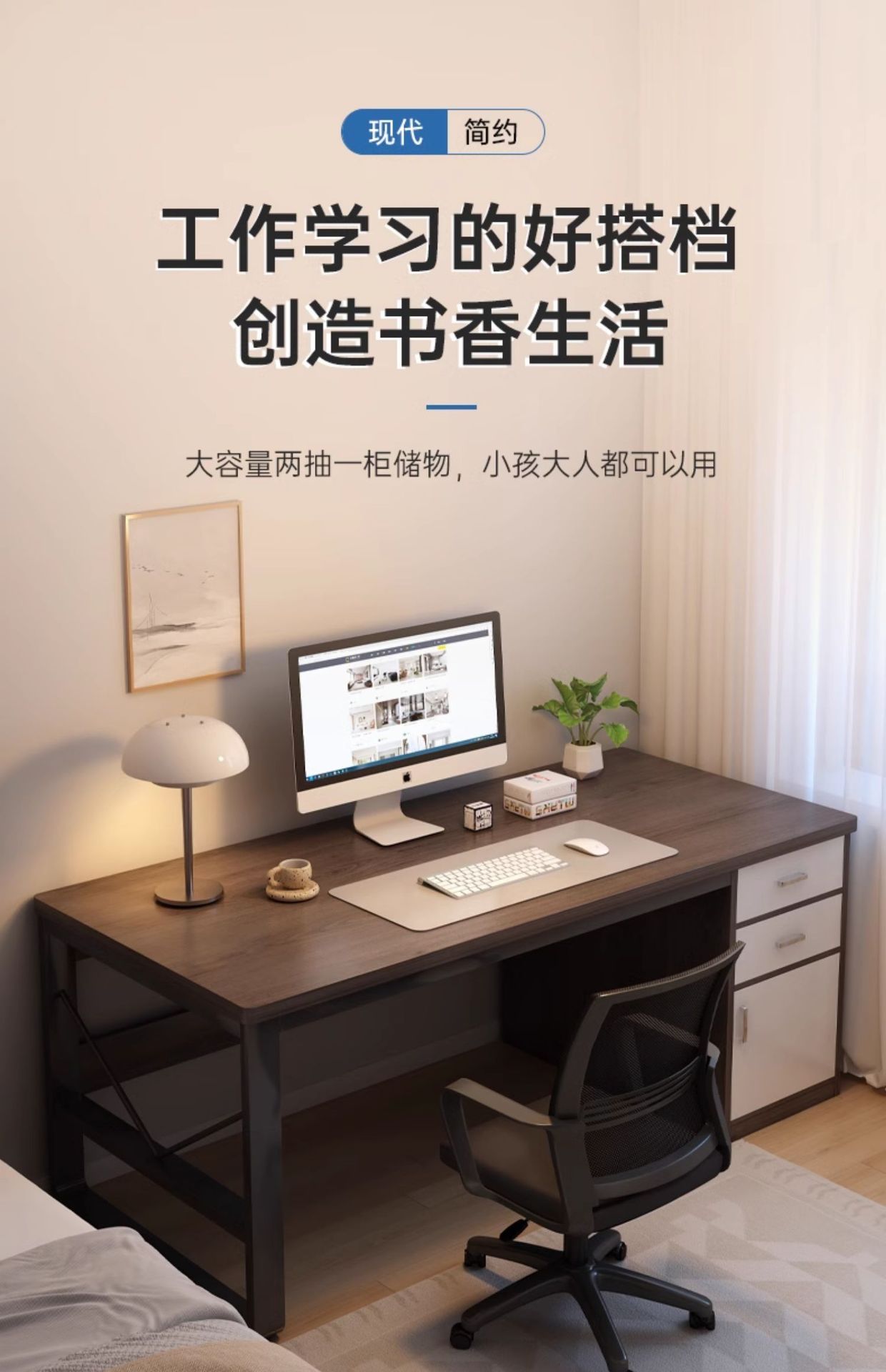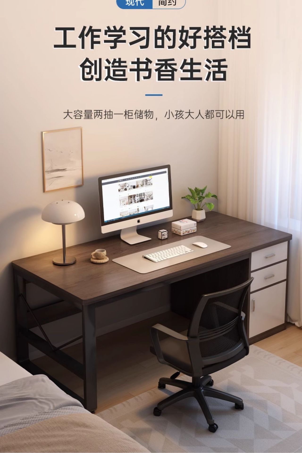 • [서랍 2개, 수납장 1개] 100*60CM 블랙월넛 컬러