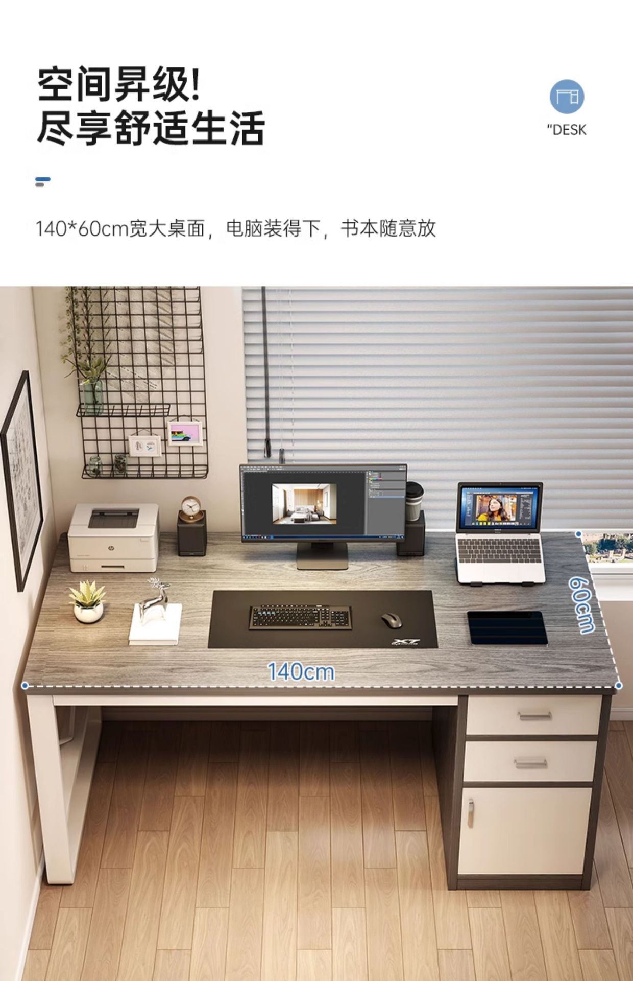 • [서랍 2개, 수납장 1개] 140*60CM 오크색상