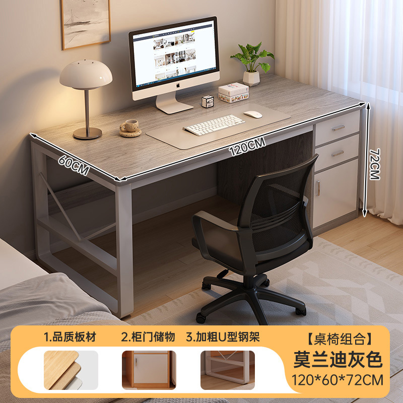 • [테이블과 의자 콤비네이션] 120CM 모란디 그레이 (서랍 2개, 수납장 1개)