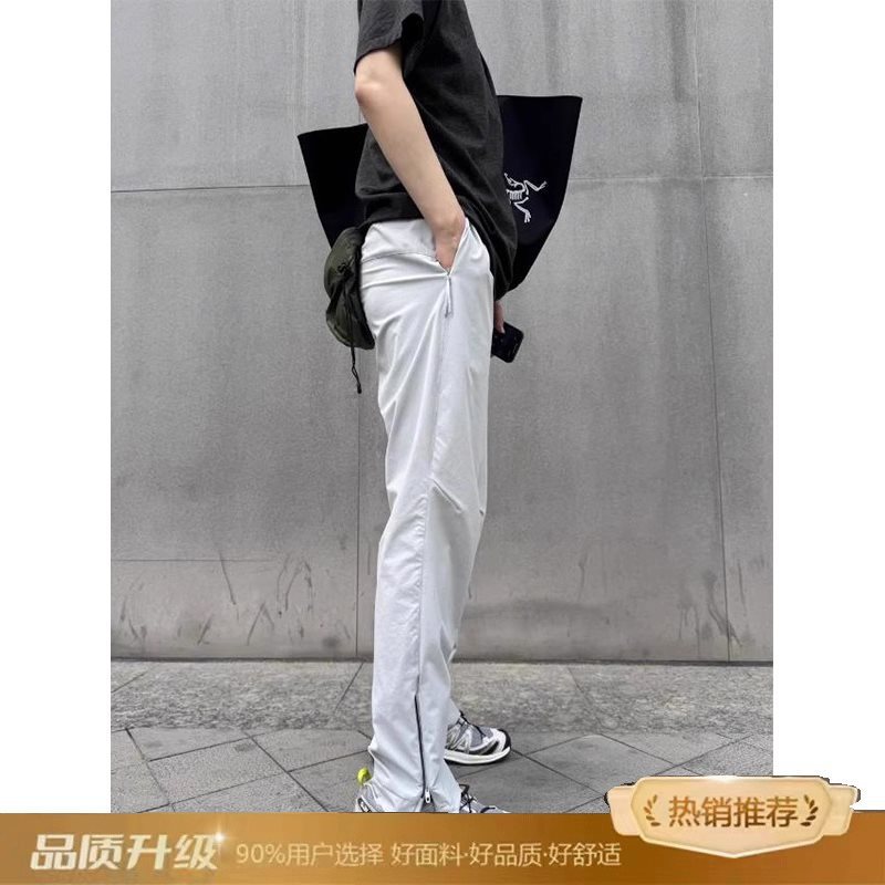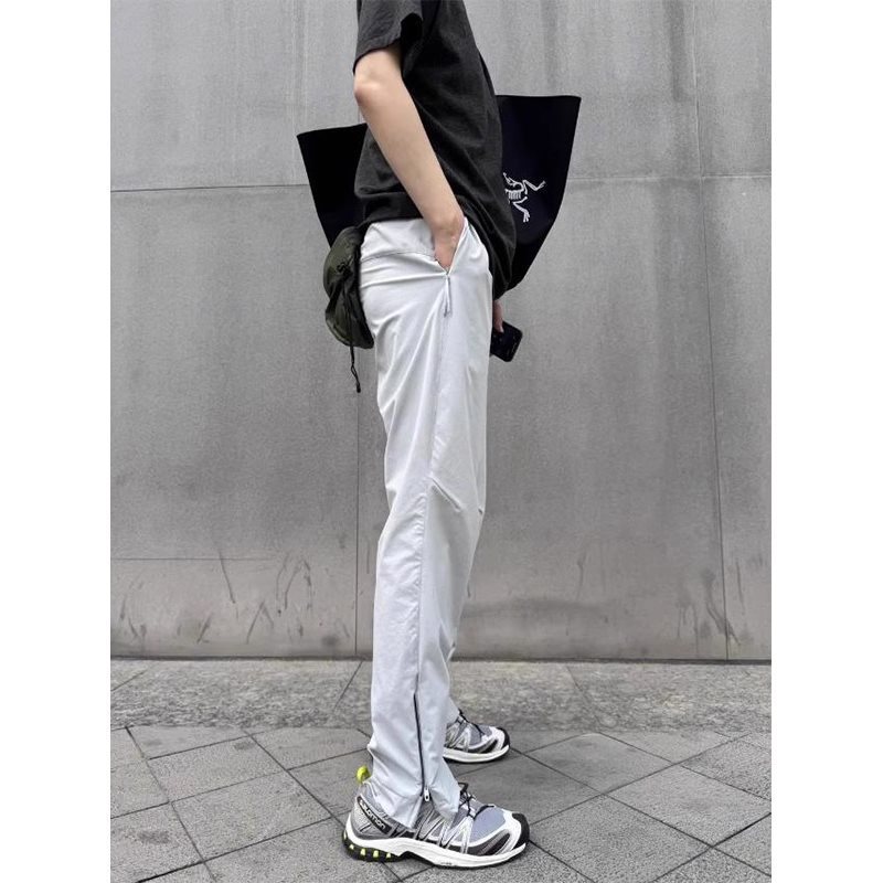 남성용 크로스보더 그레이 지퍼 스트레이트 팬츠, 여름용 가볍고 통기성이 뛰어난 아웃도어 속건성 하이킹 및 등산용 팬츠