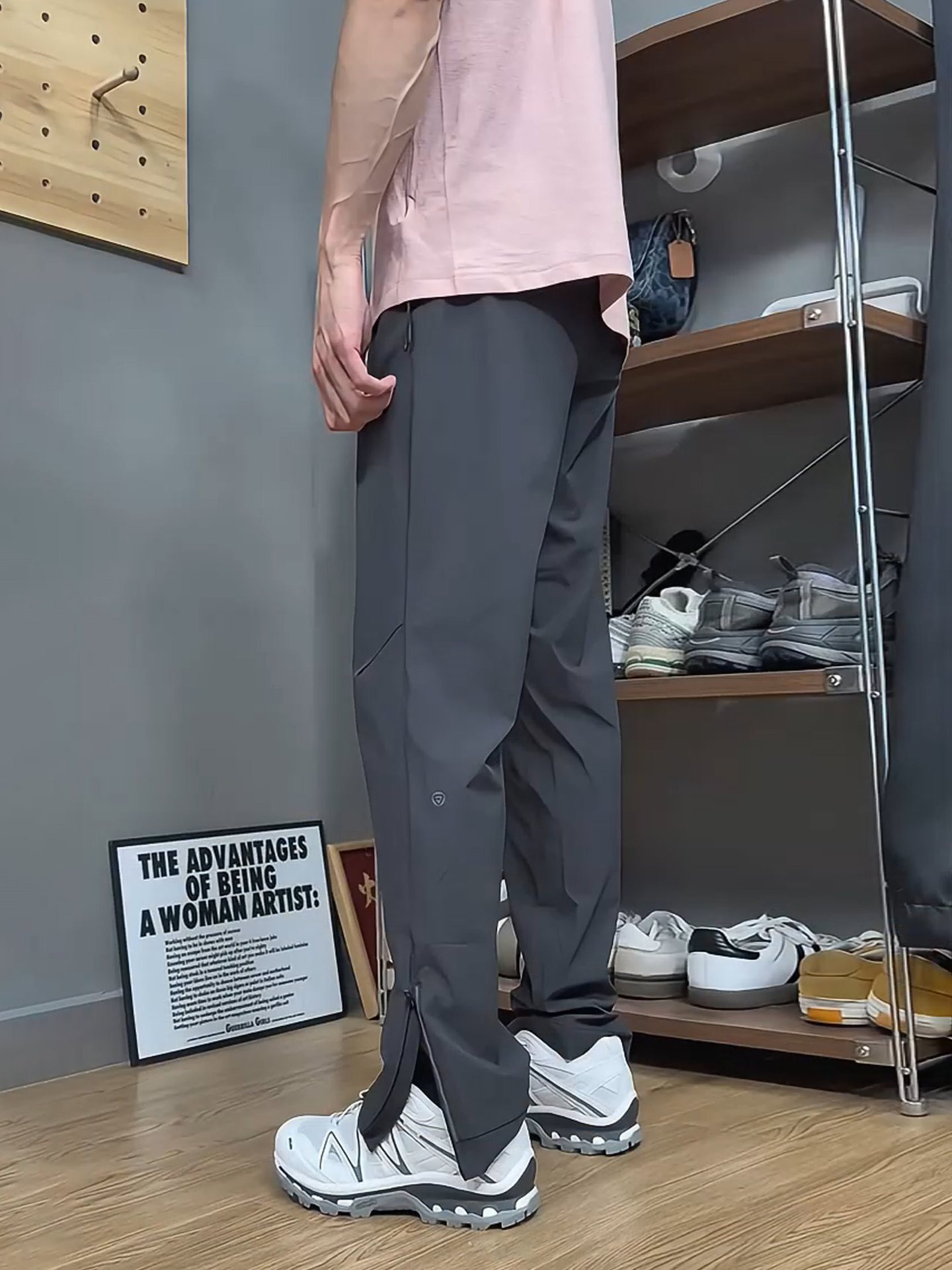 남성용 크로스보더 그레이 지퍼 스트레이트 팬츠, 여름용 가볍고 통기성이 뛰어난 아웃도어 속건성 하이킹 및 등산용 팬츠스토어 가기