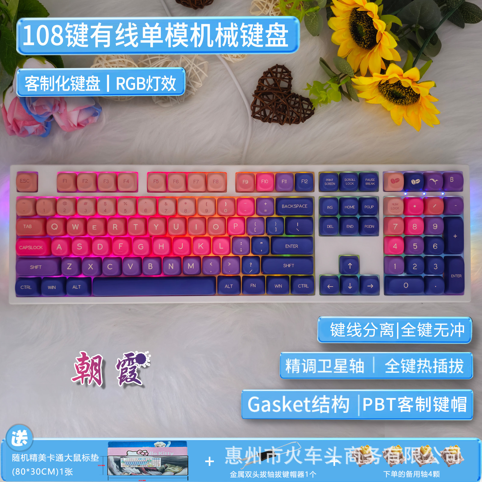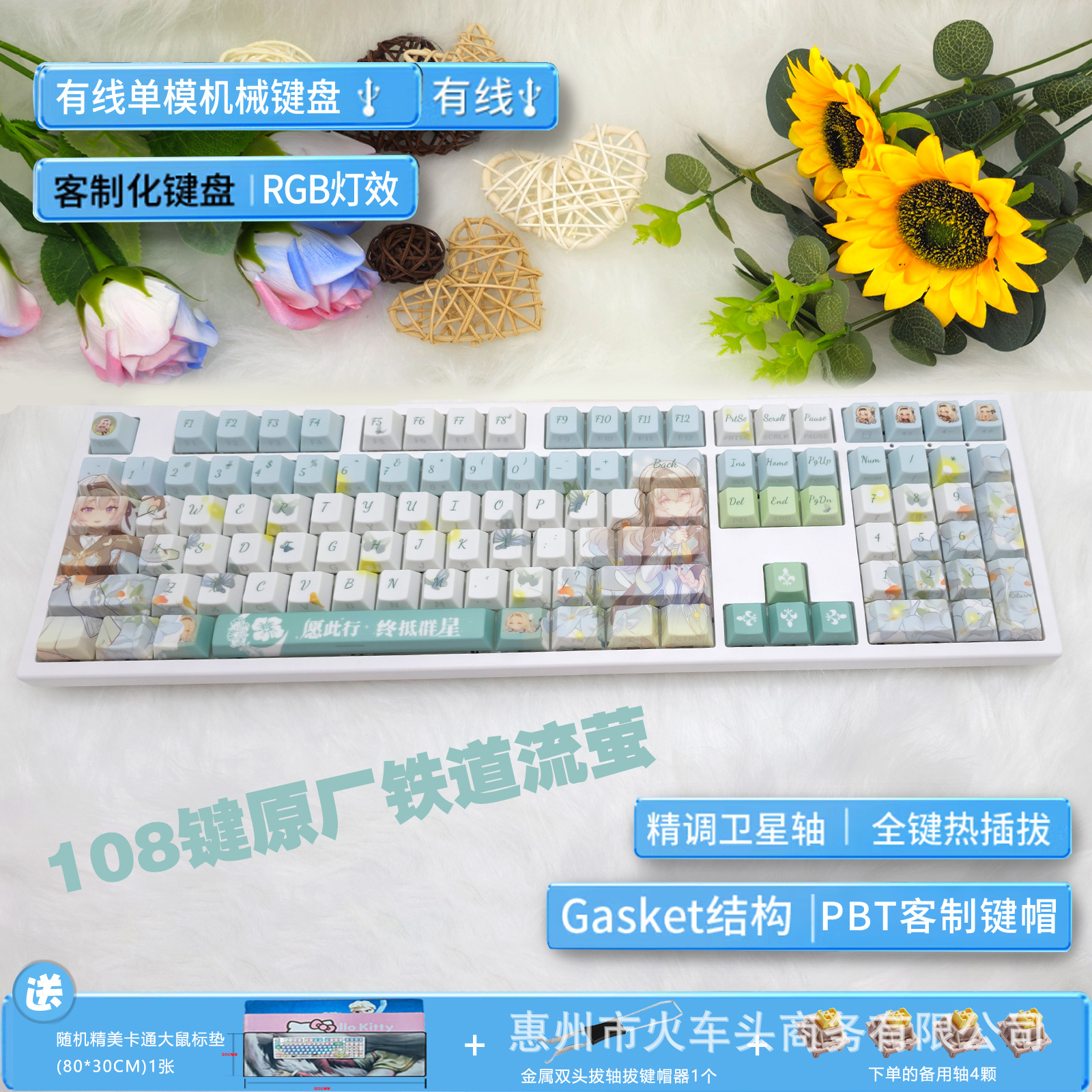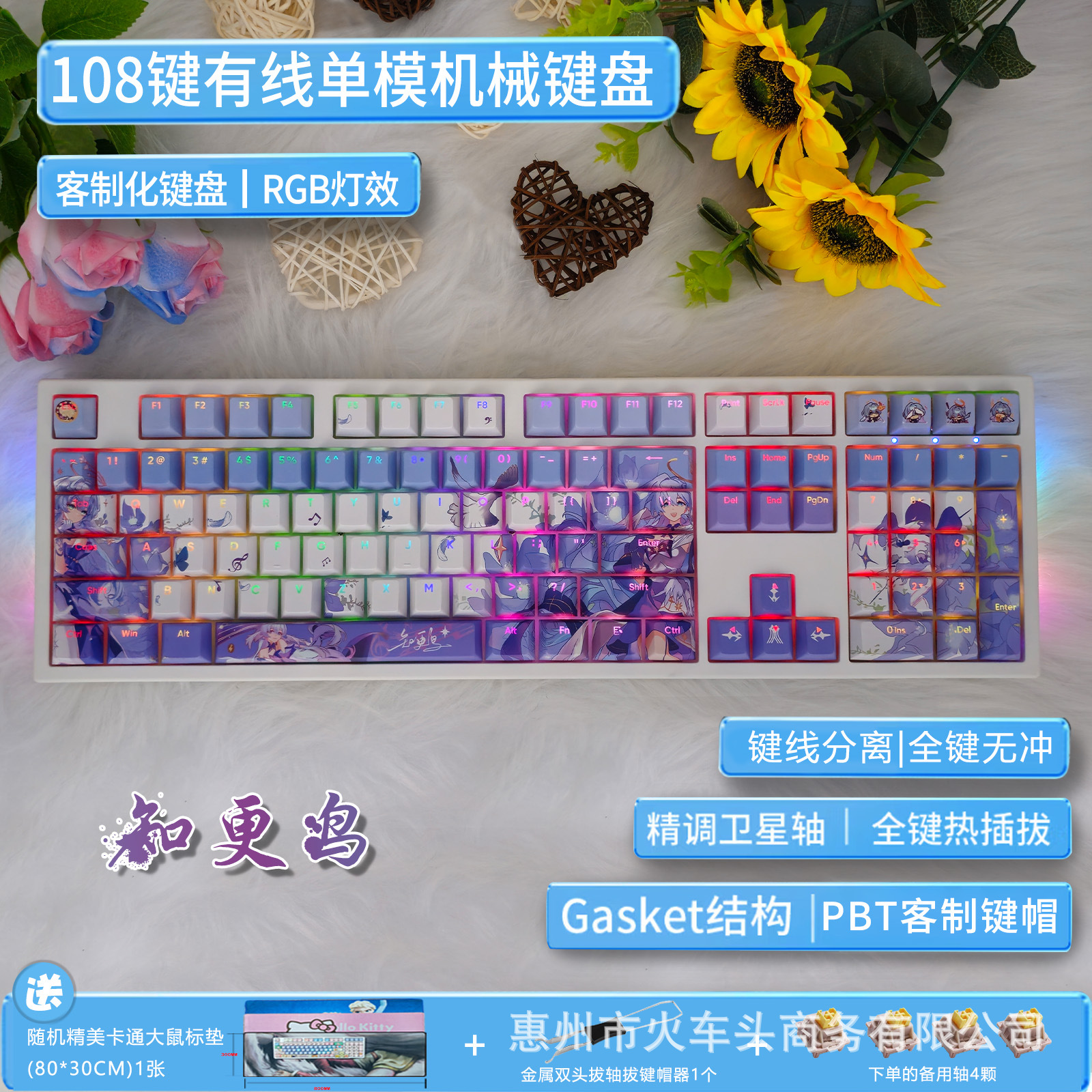 108키 기계식 키보드 유선 RGB 핫스왑 가능 축 키트 맞춤형 기계식 키보드 귀여운 소녀 음소거
