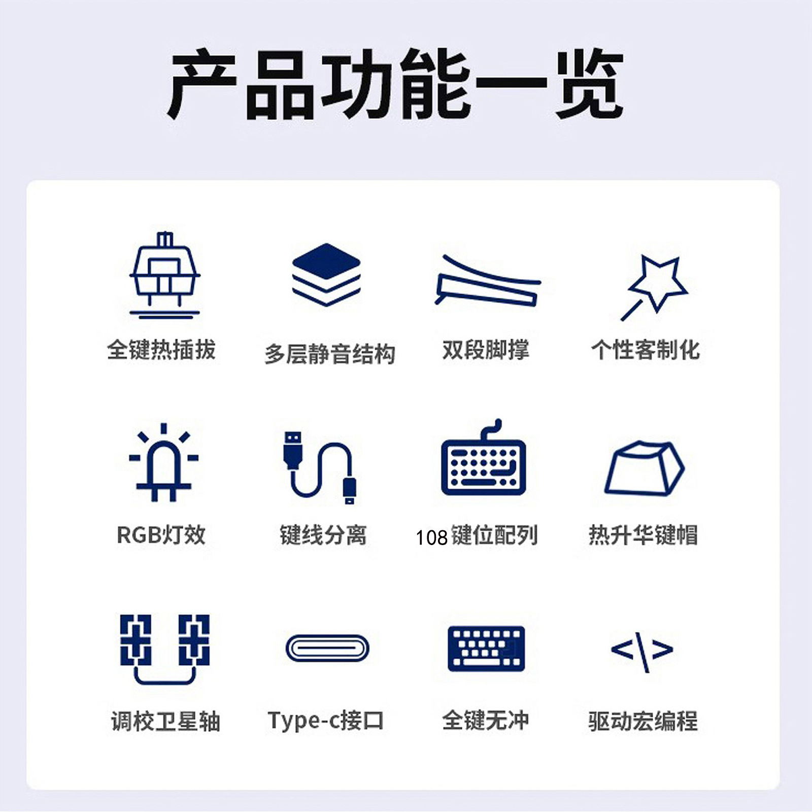 • 108 키 흰색 + MOA 무지개 노란색 축 유선丨무료 키 풀러 및 샤프트 풀러