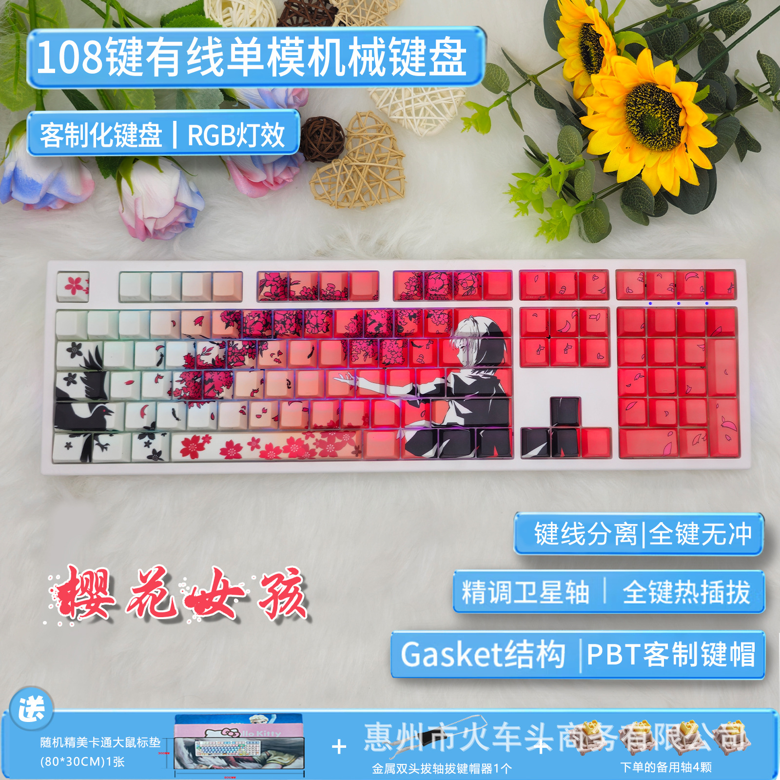 • 108 키 화이트 + 사쿠라 걸 핑크 샤프트 유선丨무료 키 풀러