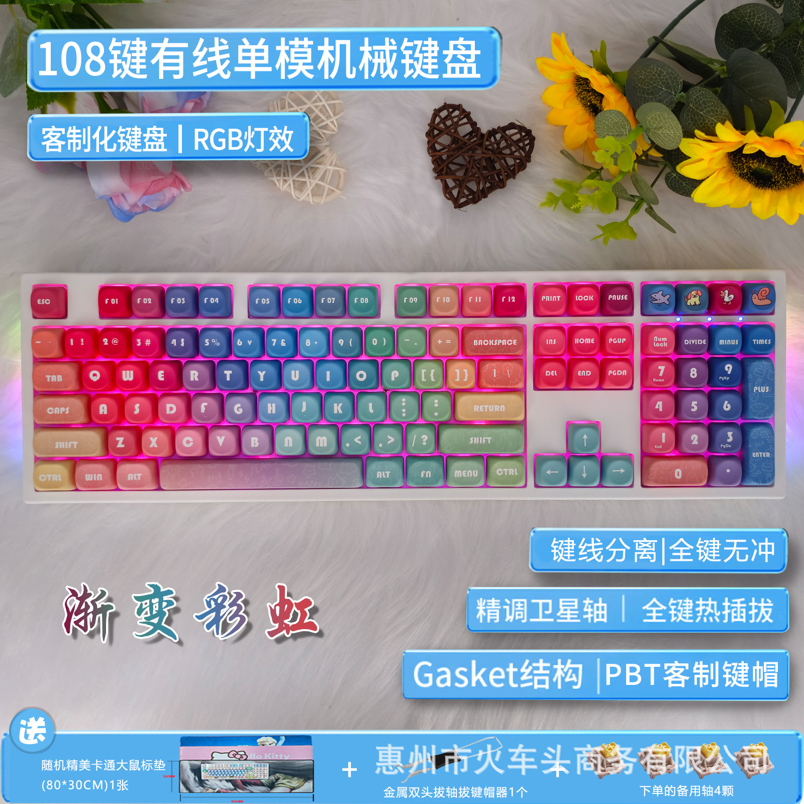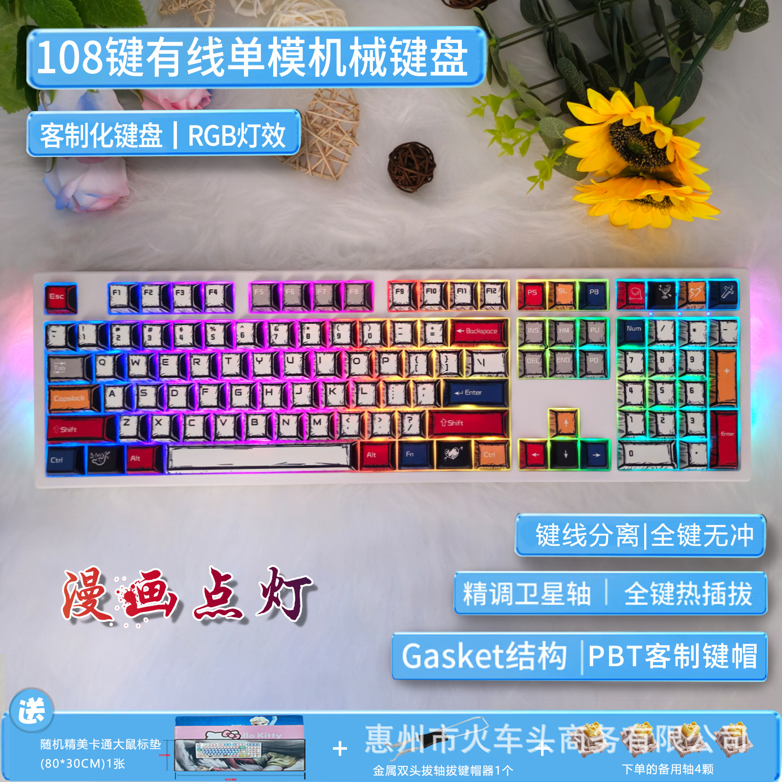 108키 기계식 키보드 유선 RGB 핫스왑 가능 축 키트 맞춤형 기계식 키보드 귀여운 소녀 음소거스토어 가기