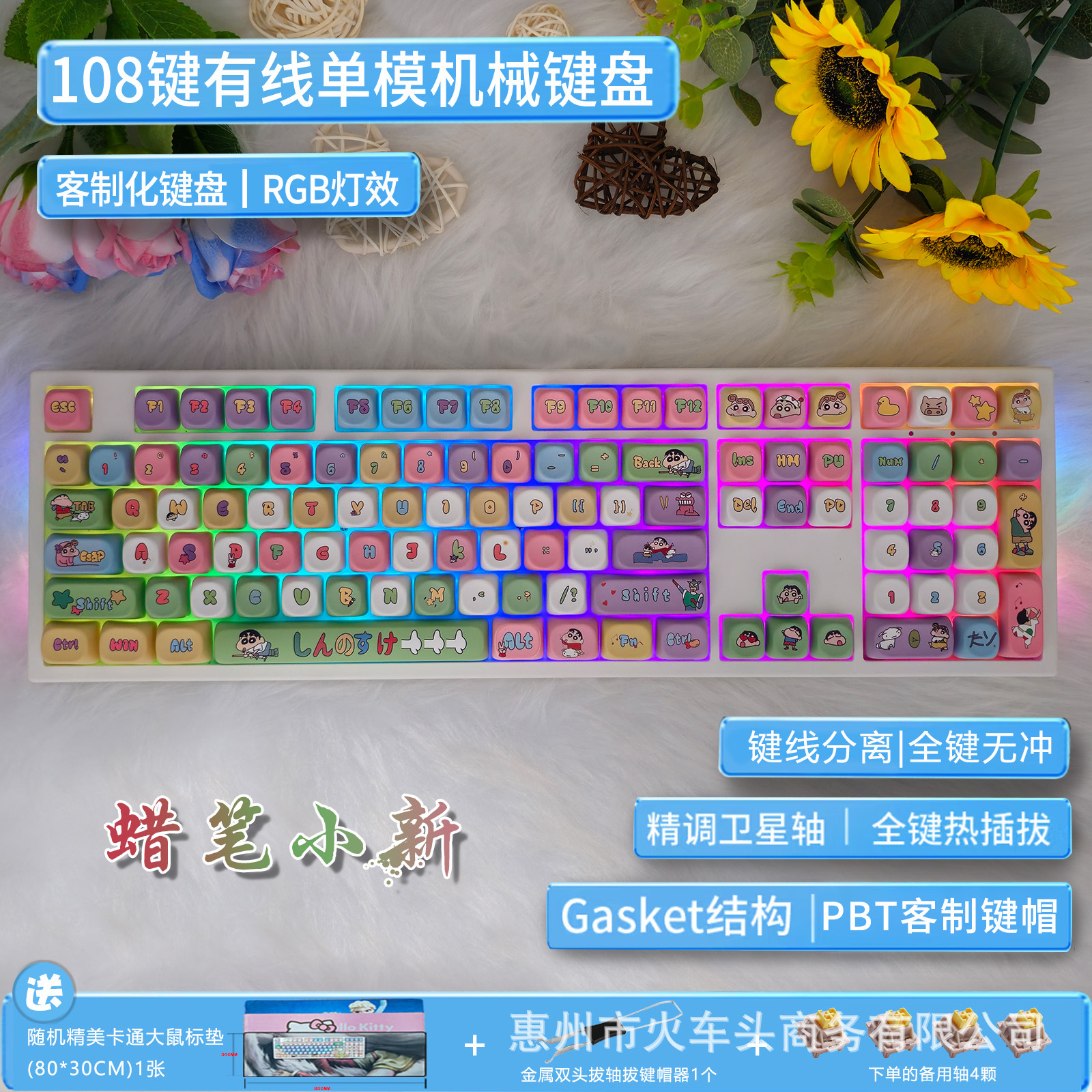 • 108키 흰색 + 크레용신짱 노란색 축 유선丨무료 키 풀러
