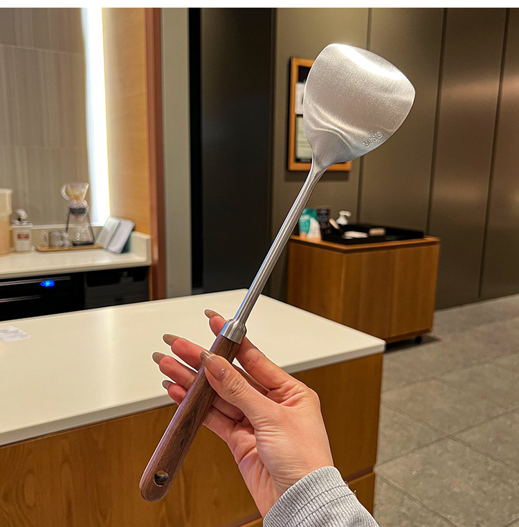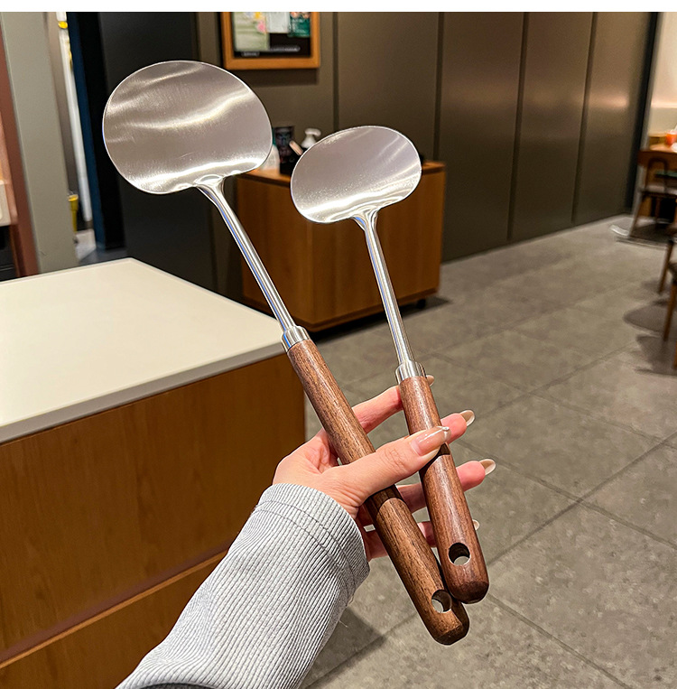 316 등급 스테인레스 스틸 호두 주걱 수프 쉘 나무 손잡이 둥근 머리 주걱 요리 냄비 주방 버섯 작은 프라이팬 주걱스토어 가기