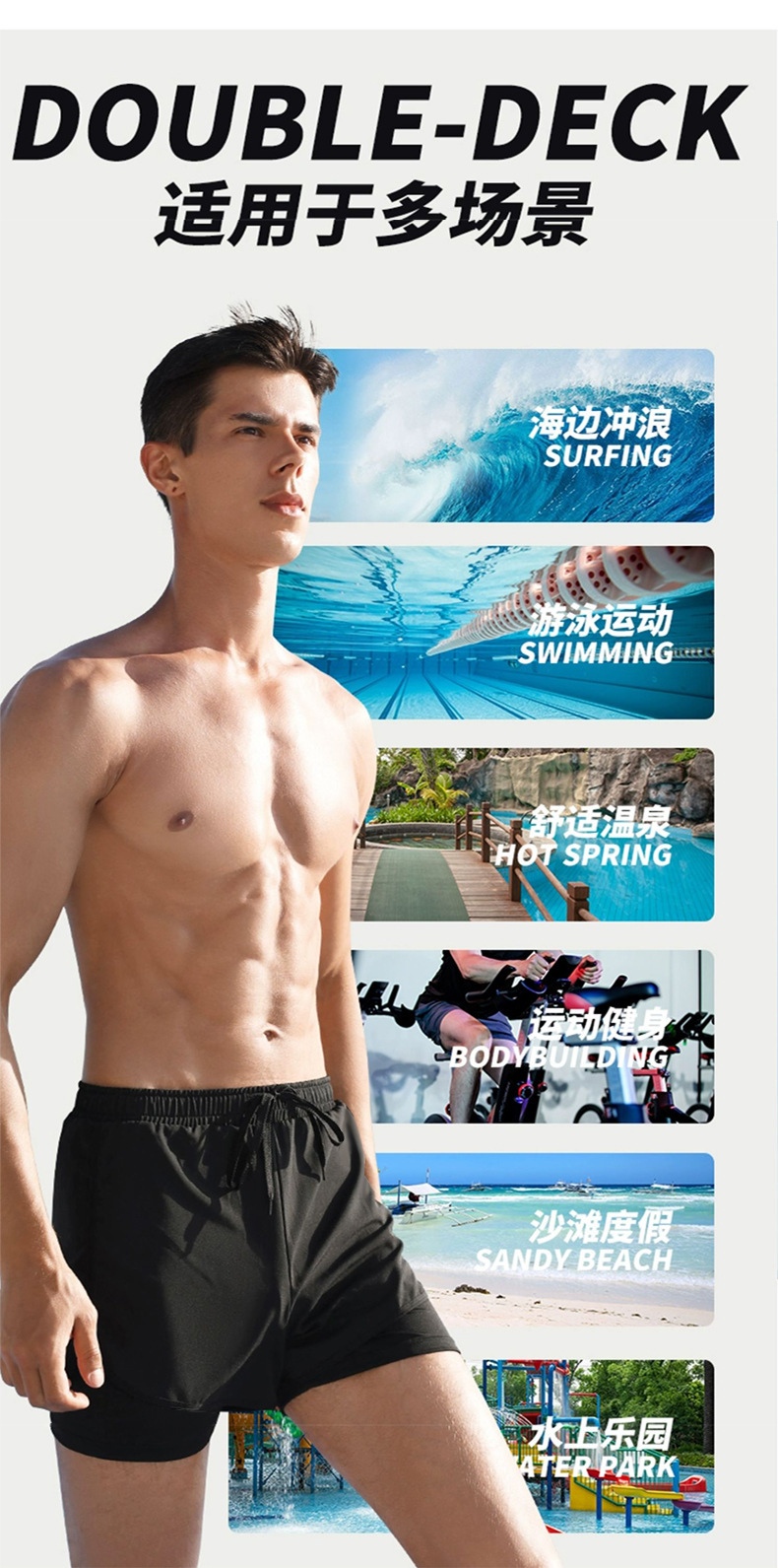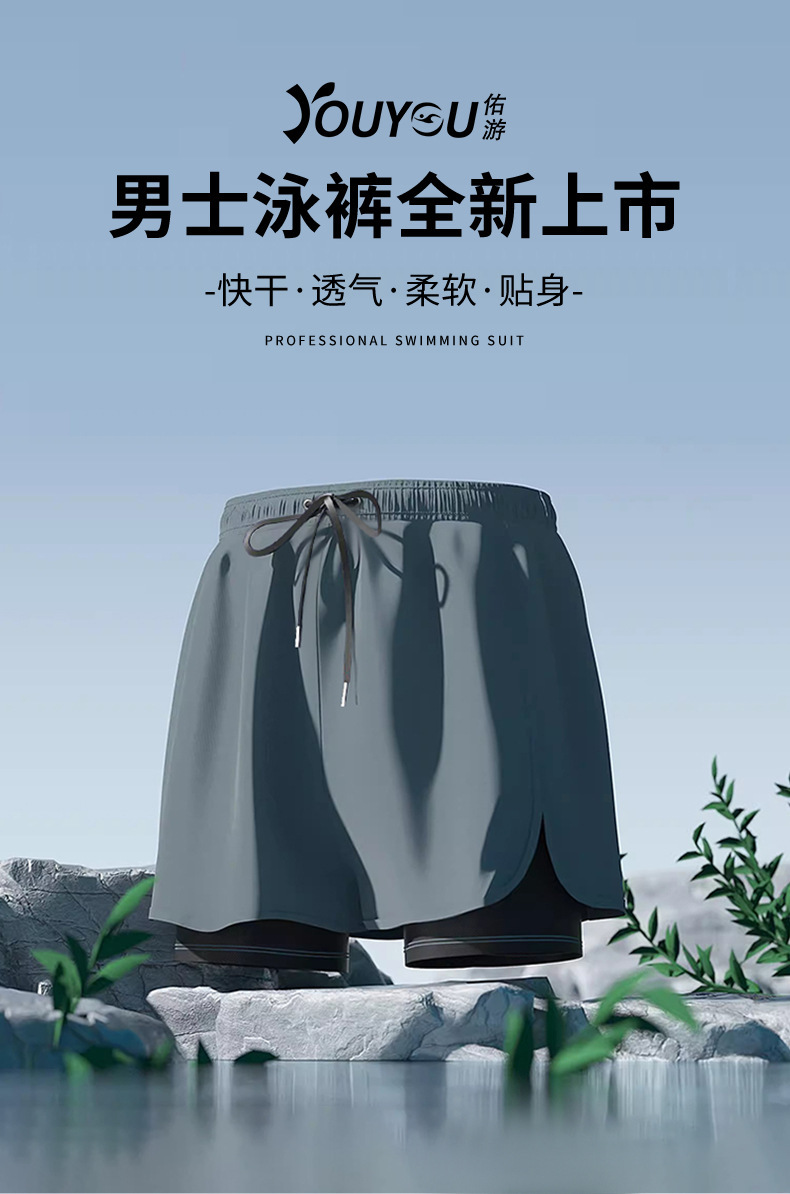 Youyou 성인 남성 수영복 2025 여름 새로운 더블 레이어 안티-불편한 남성 수영복 대형 3 점 스타일 도매스토어 가기