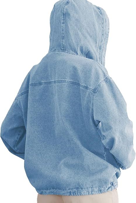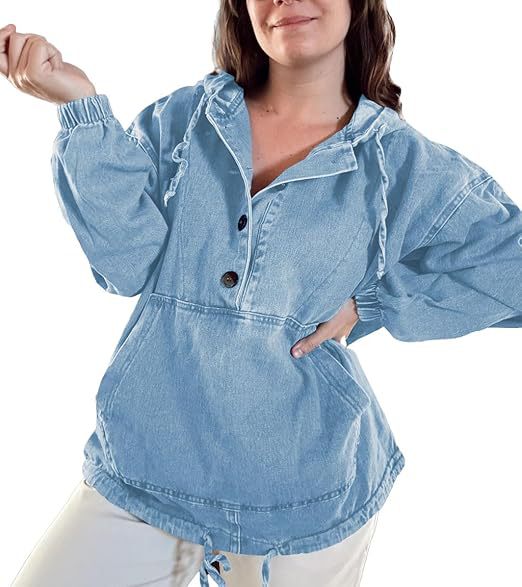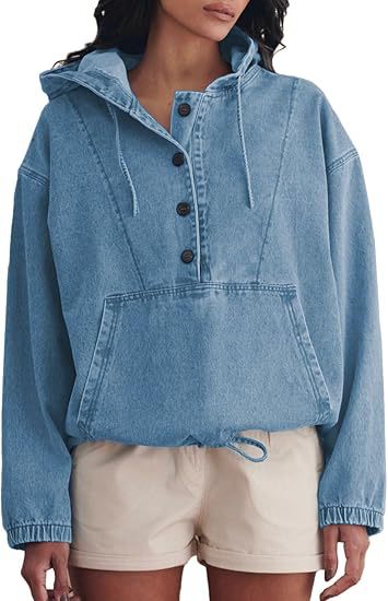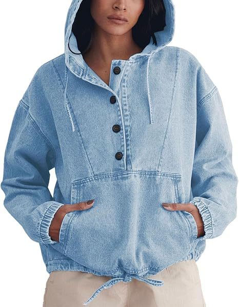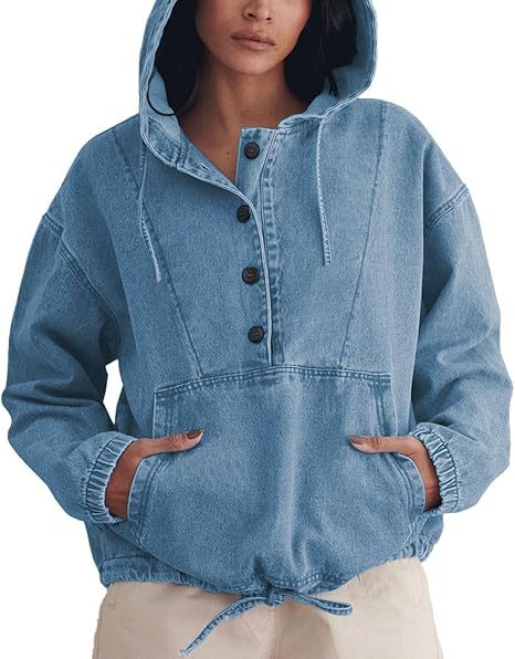 유럽과 미국의 국경 간 2025 여성 패션 데님 후드 버튼 풀오버 자켓 데님 스웨트 탑 여성스토어 가기