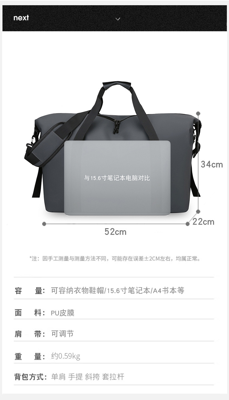 단거리 출장을 위한 여행가방, 초대용량 여행가방, 남녀공용 수하물가방, 레저스포츠 피트니스가방, 건습분리스토어 가기