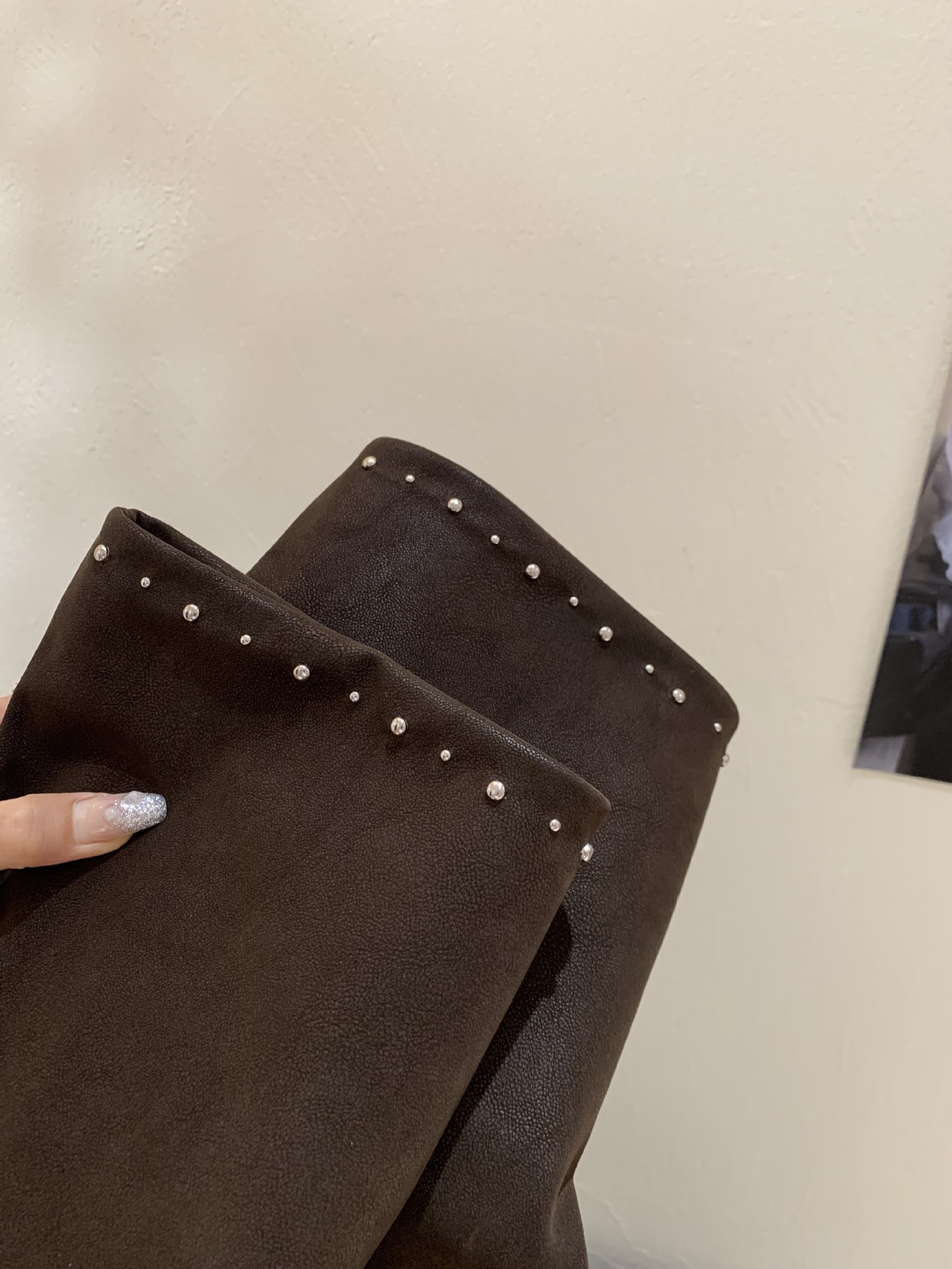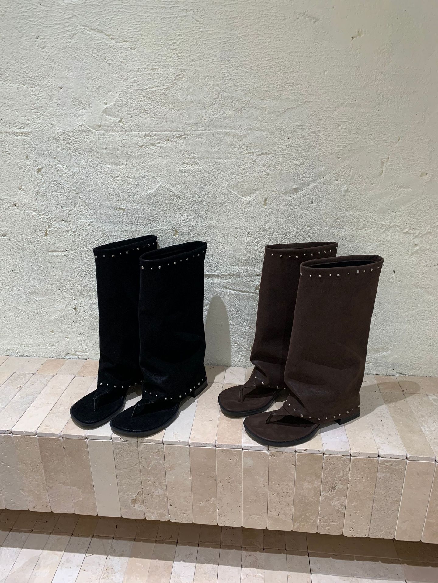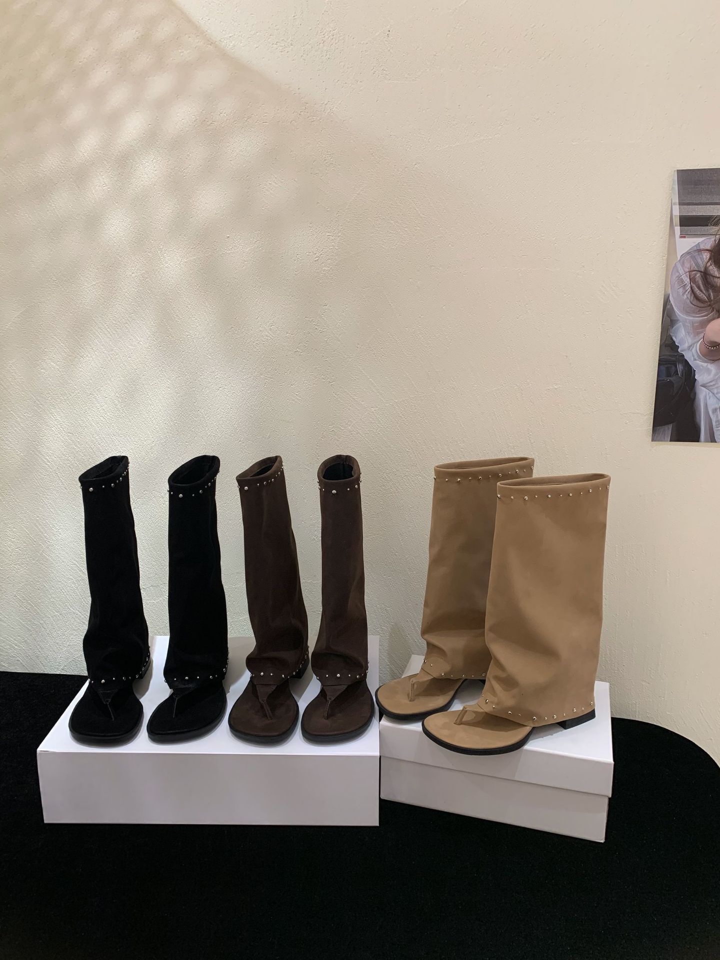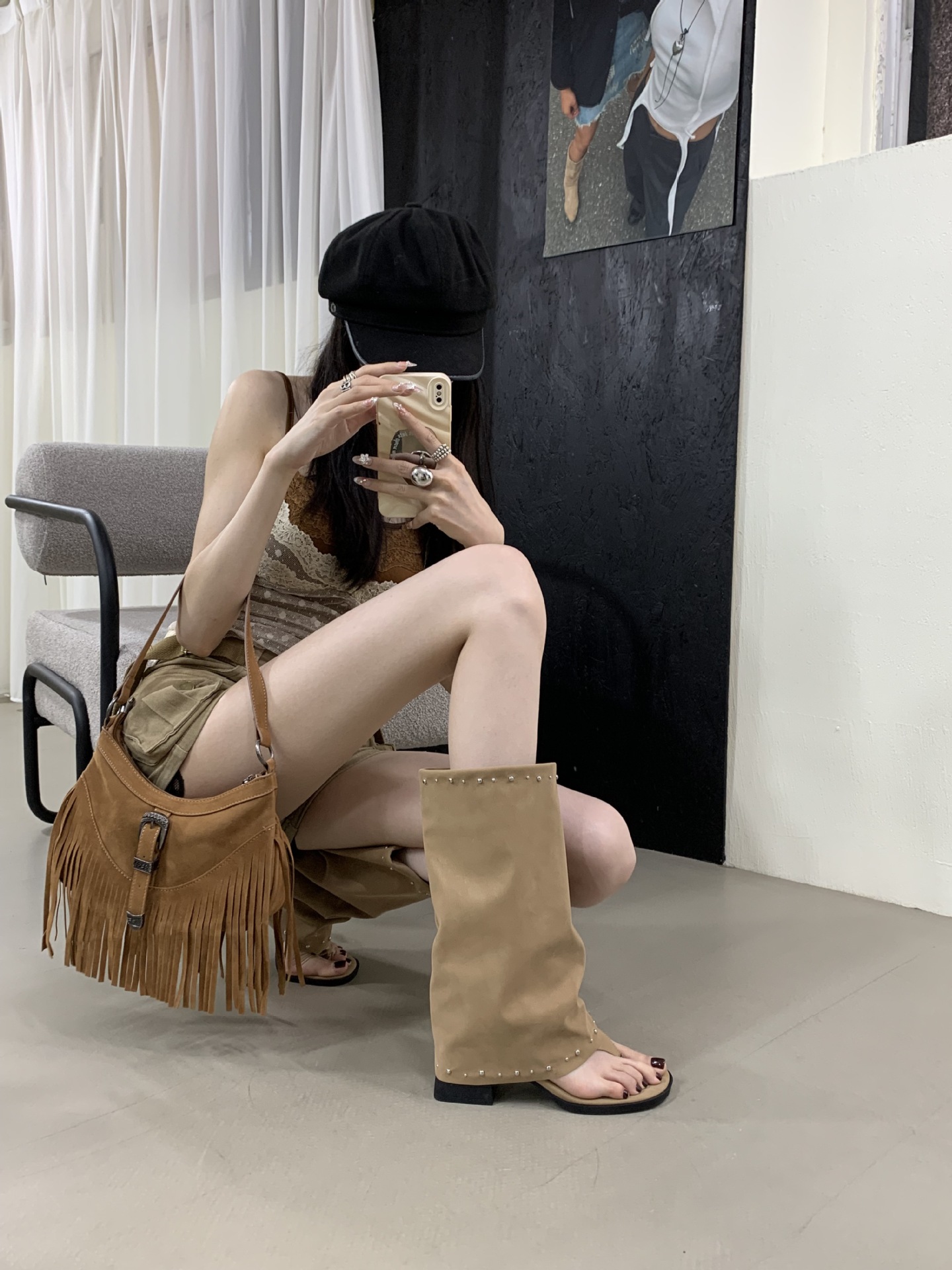 가벼운 럭셔리 틈새 복고풍 2025 여름 신작 여성 신발 샌들 겉옷 스퀘어 토 두꺼운 굽 플립 플롭 리벳 바지 샌들