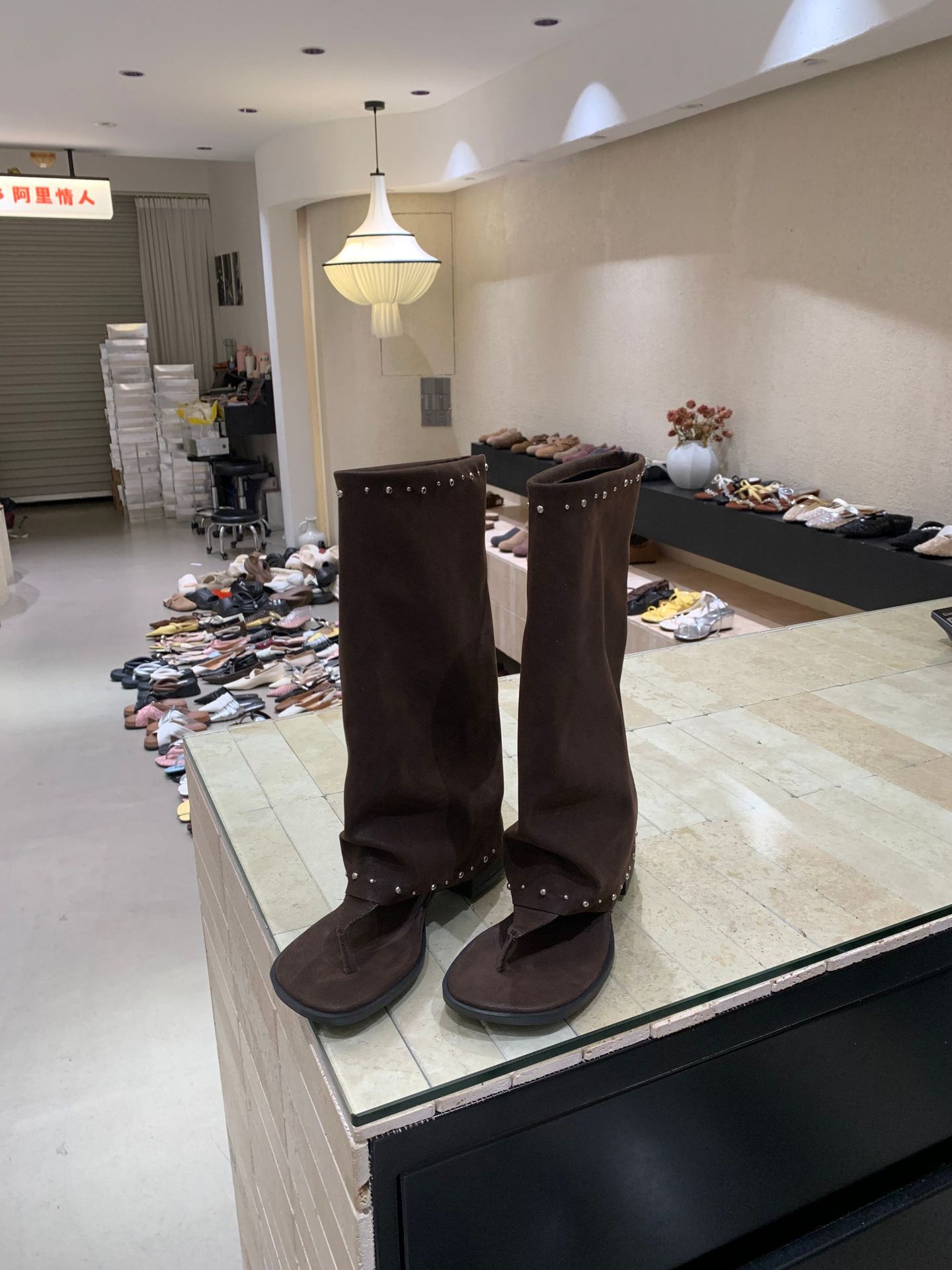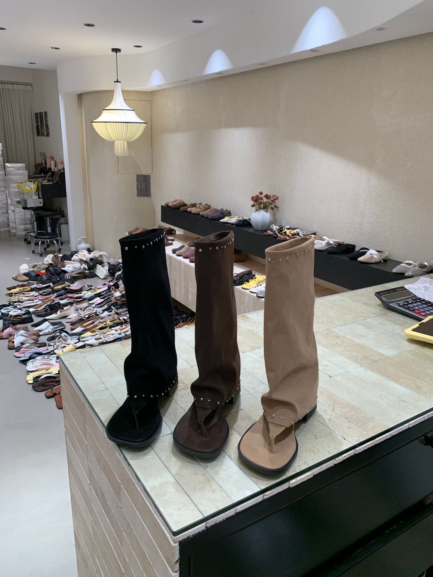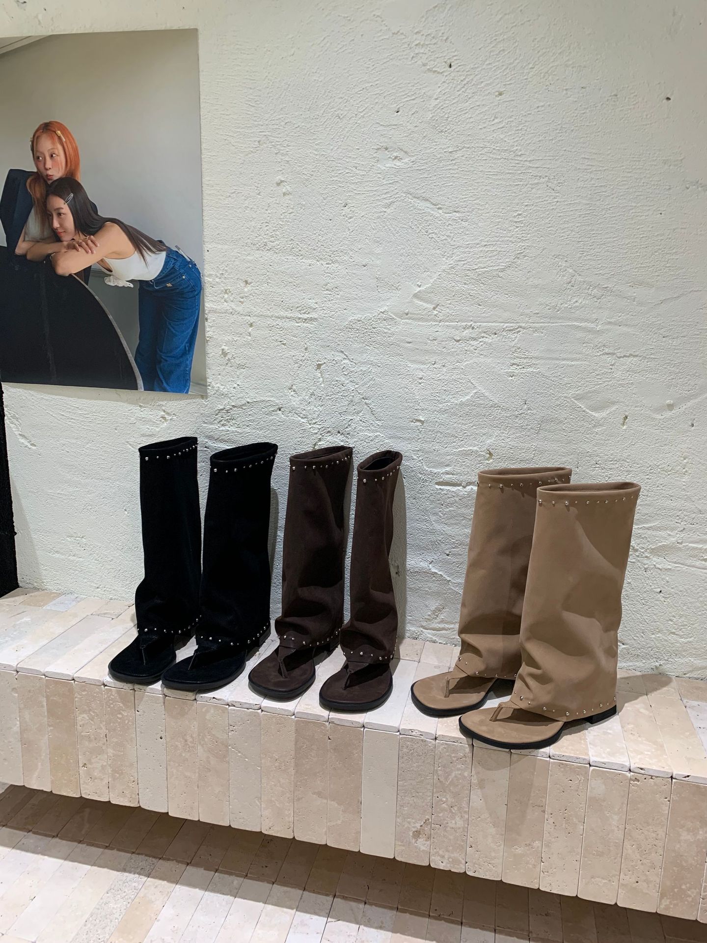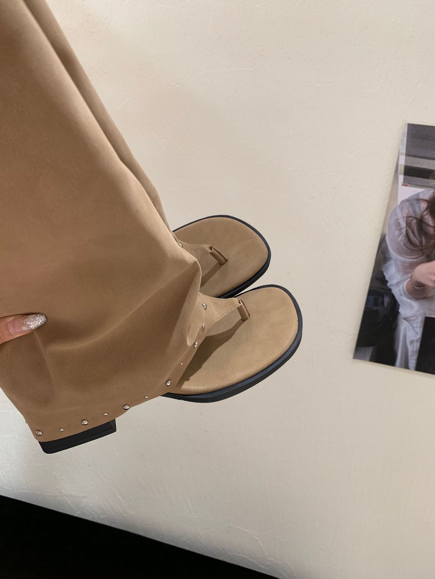 가벼운 럭셔리 틈새 복고풍 2025 여름 신작 여성 신발 샌들 겉옷 스퀘어 토 두꺼운 굽 플립 플롭 리벳 바지 샌들스토어 가기