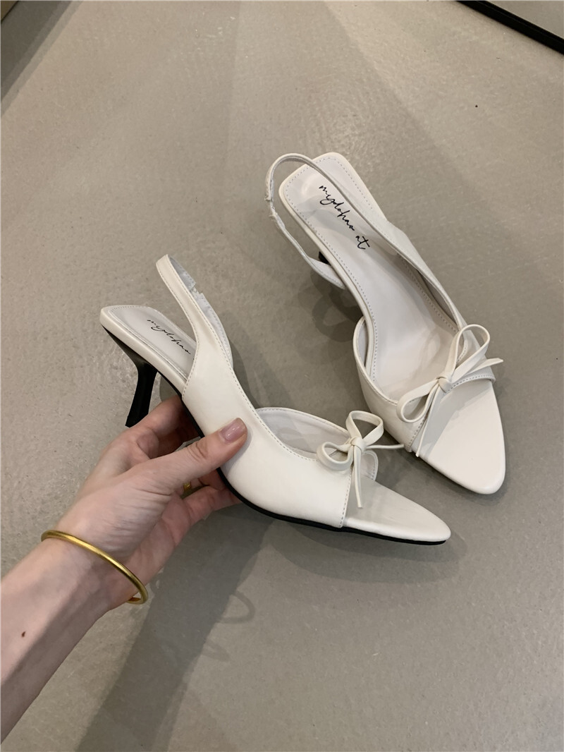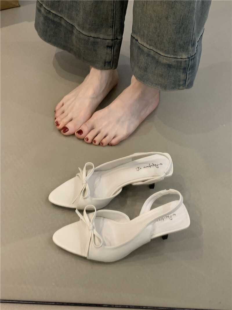 프렌치 니치 하이힐 여성화 2025 여름 부드러운 요정 스타일 보우 포인티드 토 스틸레토 힐 샌들