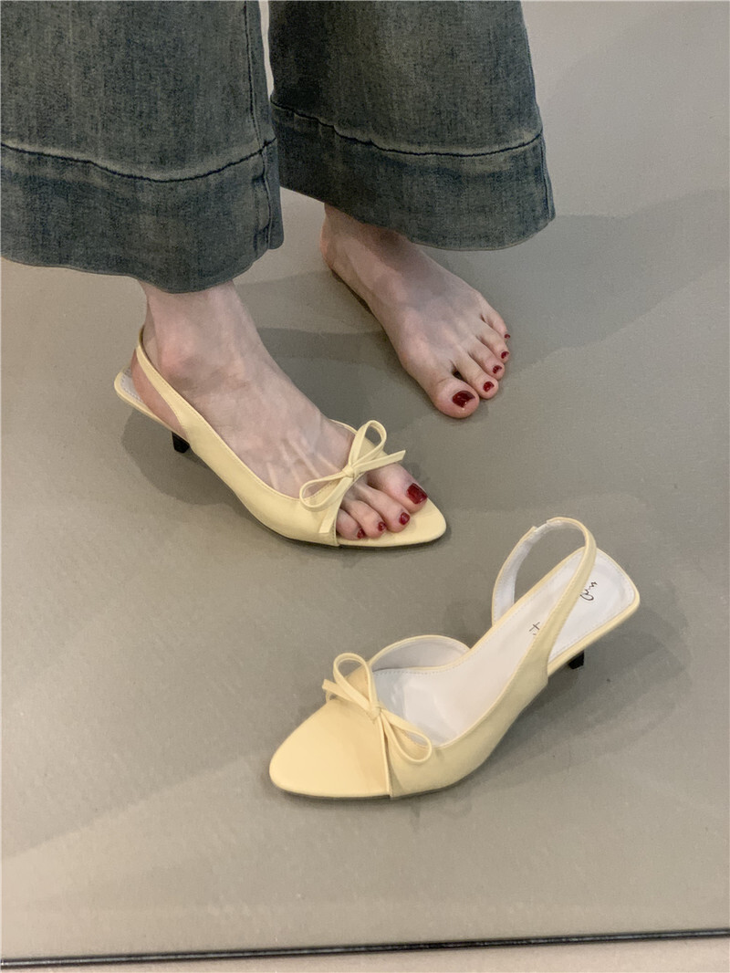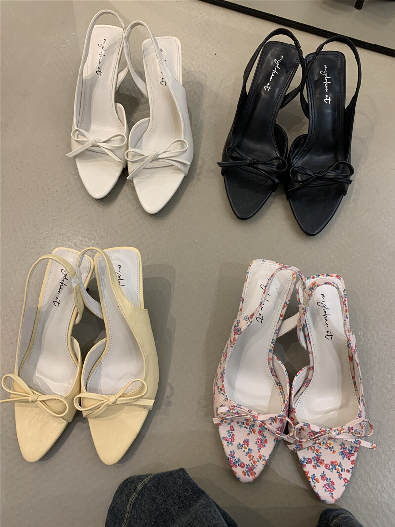 프렌치 니치 하이힐 여성화 2025 여름 부드러운 요정 스타일 보우 포인티드 토 스틸레토 힐 샌들스토어 가기