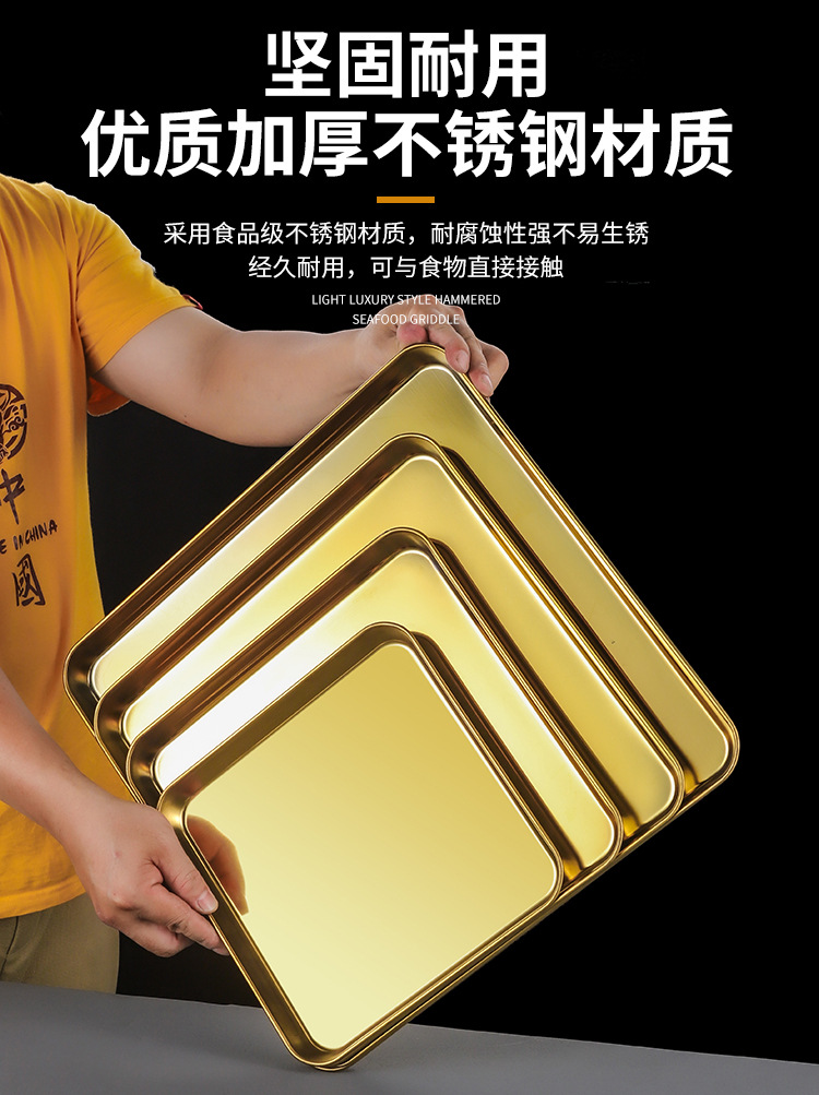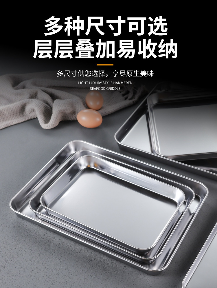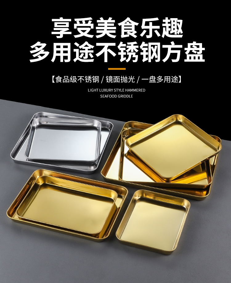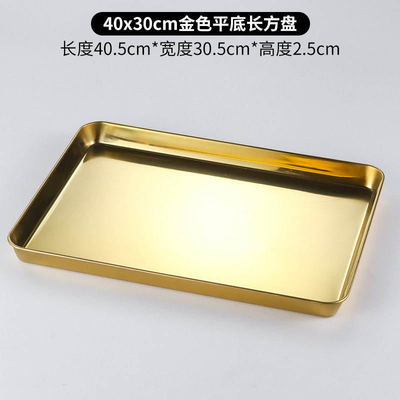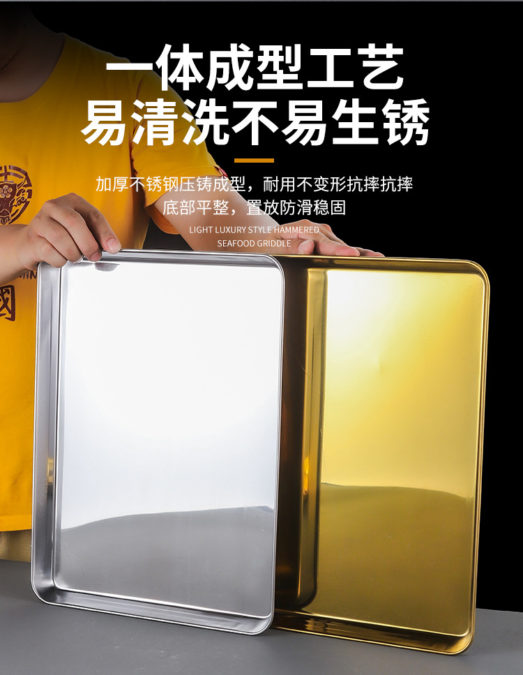 한국 스테인레스 스틸 직사각형 접시 두꺼운 평평한 바닥 트레이 상업용 황금 바베큐 접시 오븐 디너 접시 밀짚 찜 접시스토어 가기