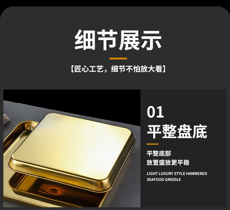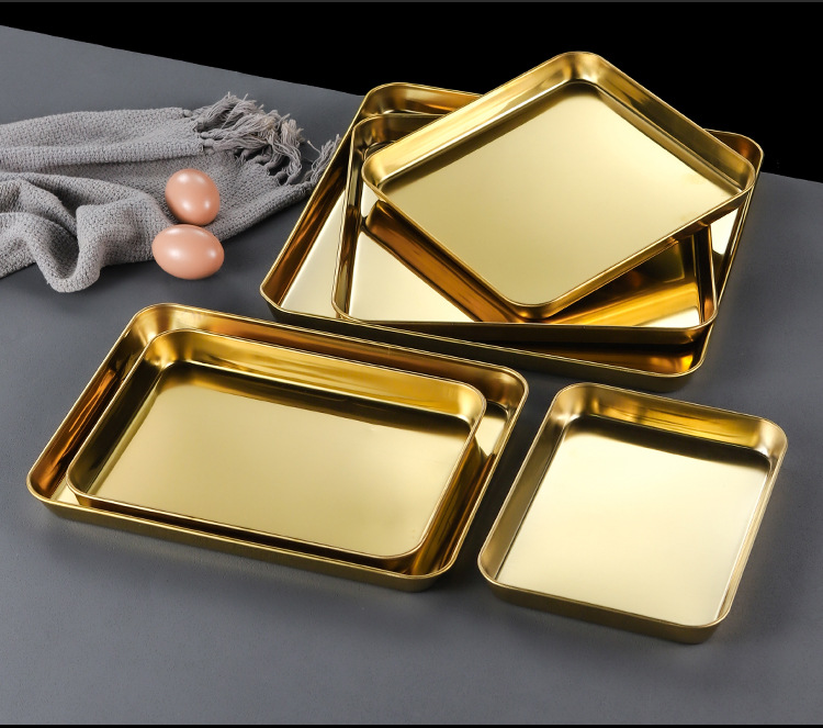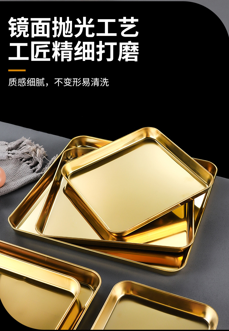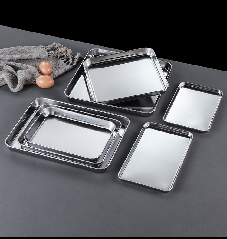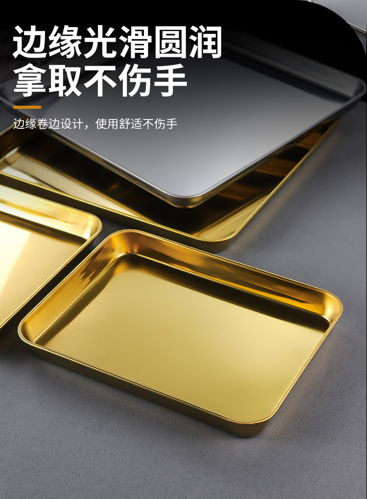 한국 스테인레스 스틸 직사각형 접시 두꺼운 평평한 바닥 트레이 상업용 황금 바베큐 접시 오븐 디너 접시 밀짚 찜 접시스토어 가기