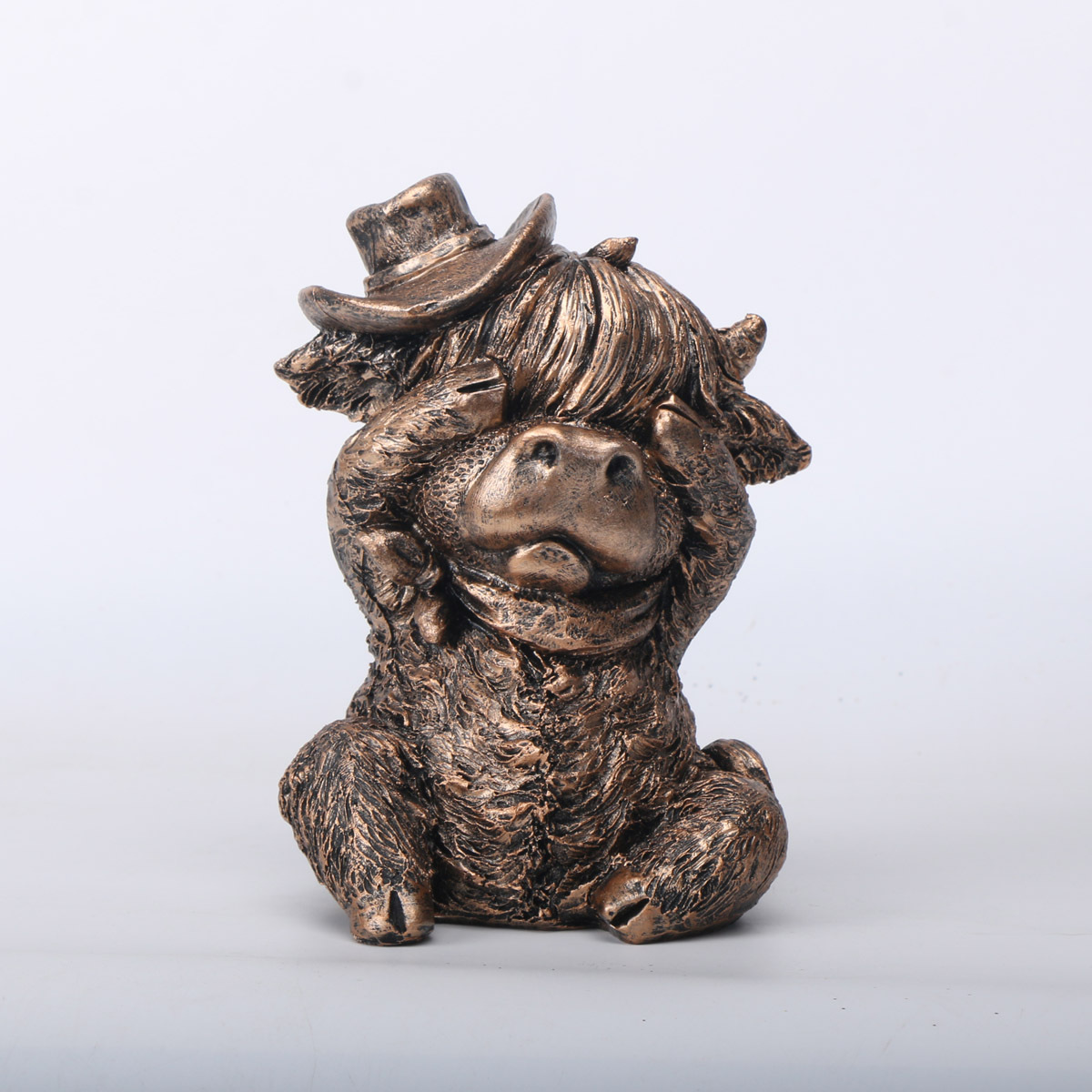 카우보이 모자, 소박한 수지 농가 장식, 안뜰 정원 탁상 장식품을 갖춘 국경 간 새로운 하이랜드 소 장식품