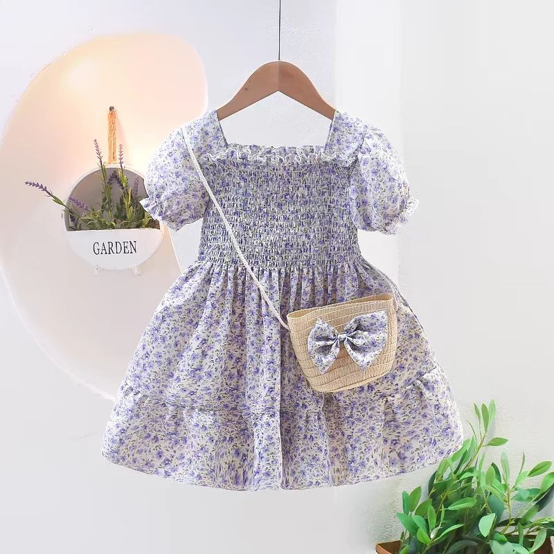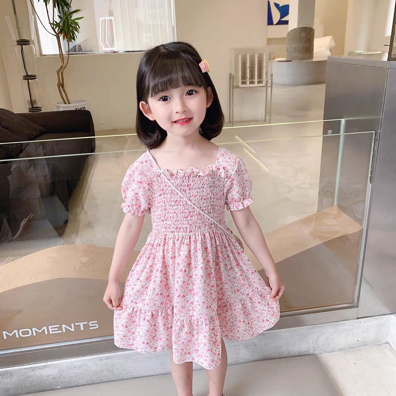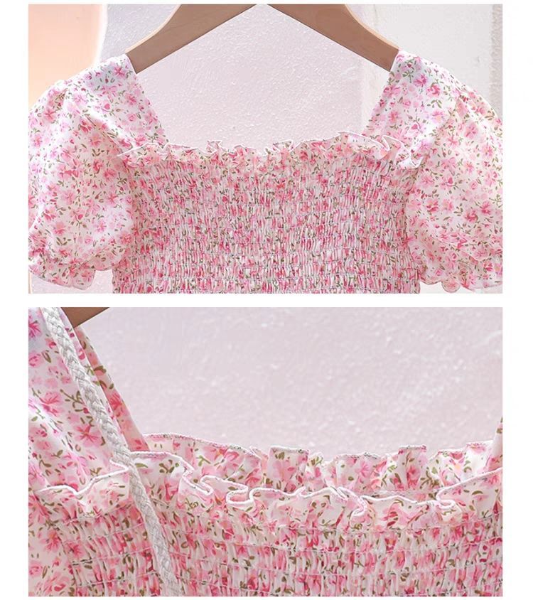 여자 2025 드레스 여름 새로운 어린이 꽃 귀여운 ins 서스펜더 스타일 아기 소녀 공주 드레스스토어 가기