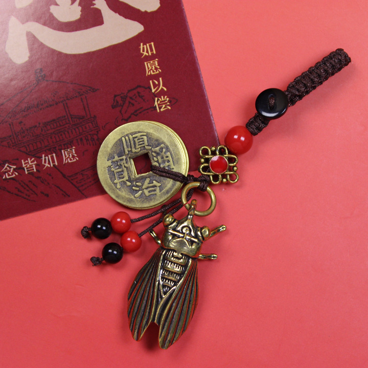 • 고민된 황금 매미 + 녹색 구슬과 붉은 밧줄