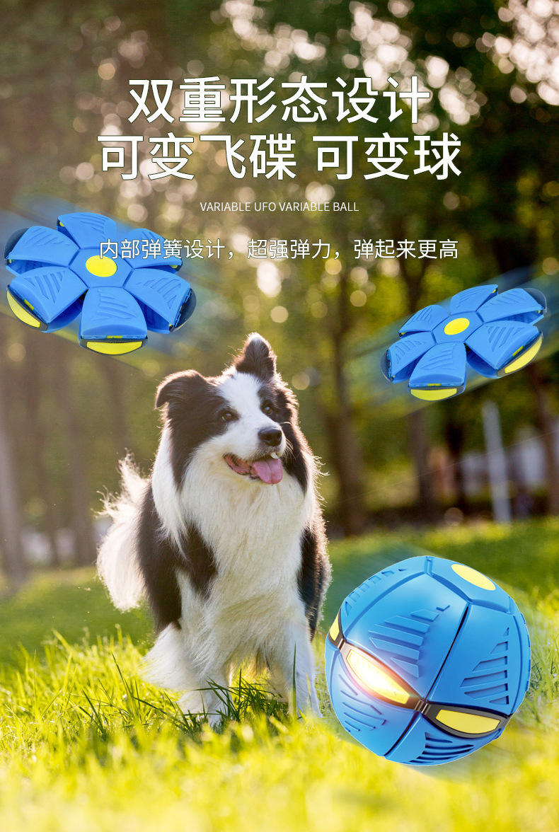 비행접시 변형 공 애완동물용 인터랙티브 발광 탄성 내구성 있는 물림 방지 장난감 공 강아지 자가 놀이용 지루해짐 해소 장난감 대형견용스토어 가기