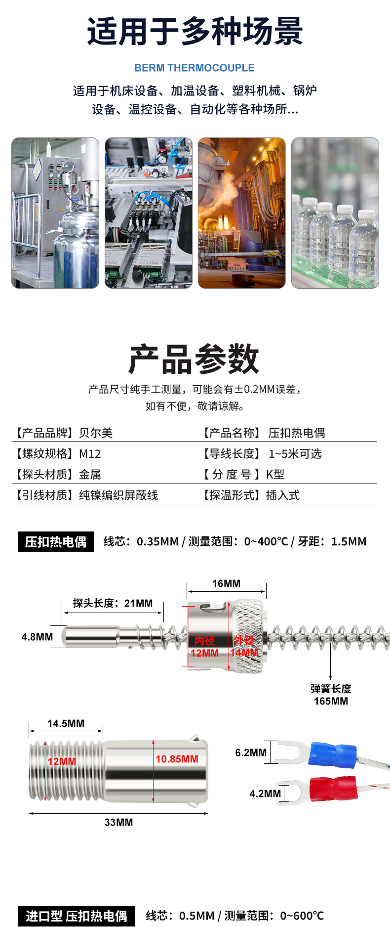 K형 열전대 사출기 배럴 센서 프레스 버클 온도 라인은 다양한 길이로 제공됩니다.스토어 가기