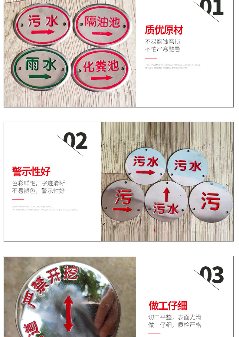스테인리스 지면 표지판 아래에는 케이블 표지판, 가스 배관 표지판, 배수관 표지판이 있습니다.스토어 가기