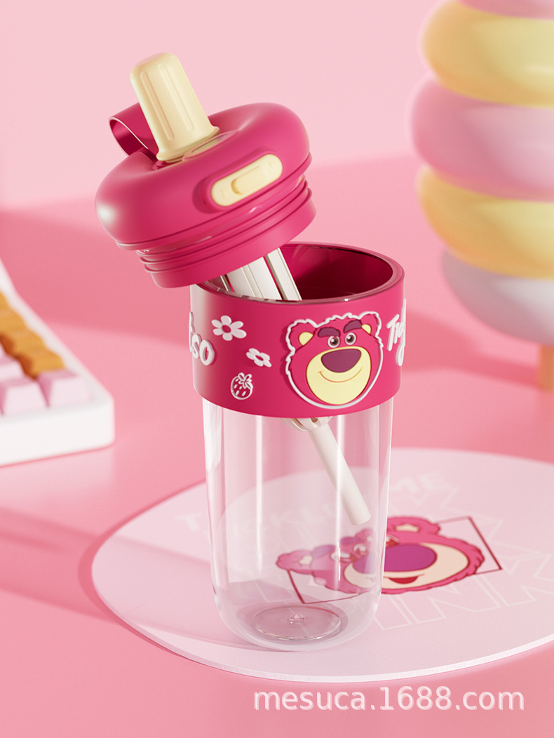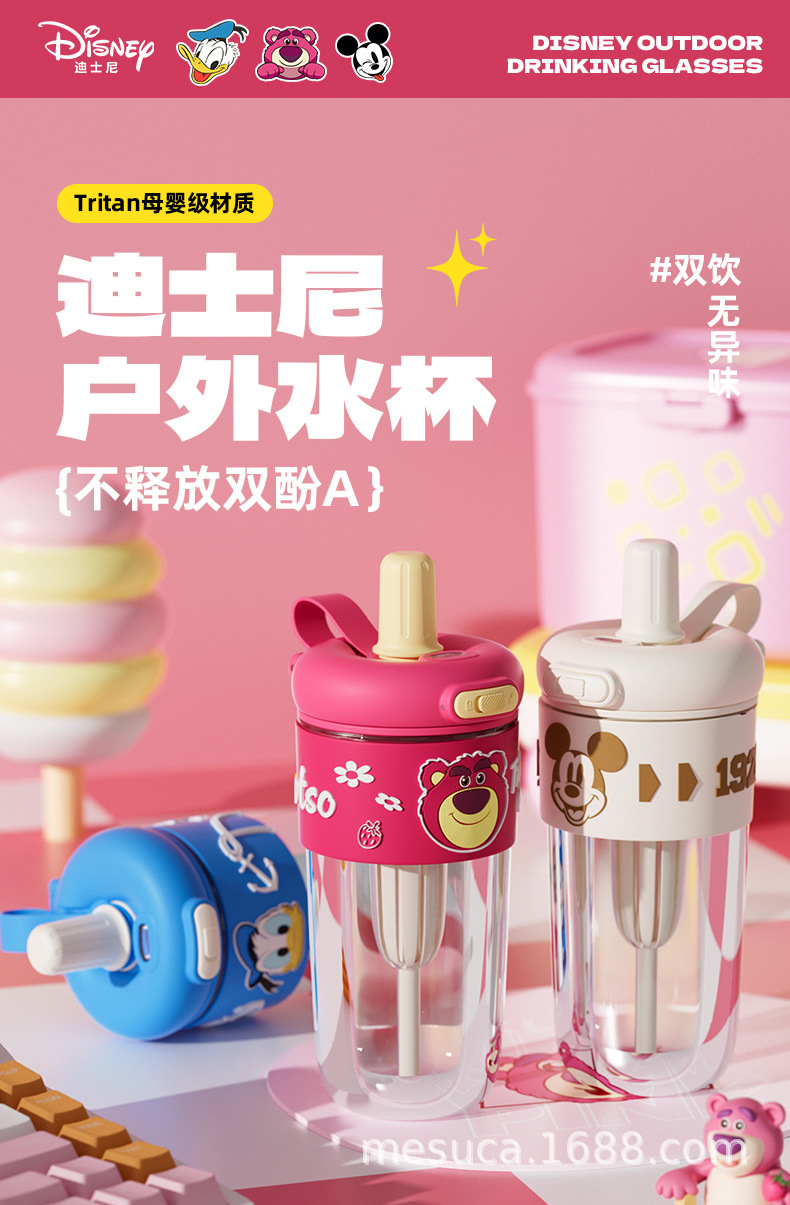 여름에 여자아이들을 위한 디즈니 빨대컵, 귀여운 트라이탄 플라스틱 휴대용 학생 플라스틱 컵