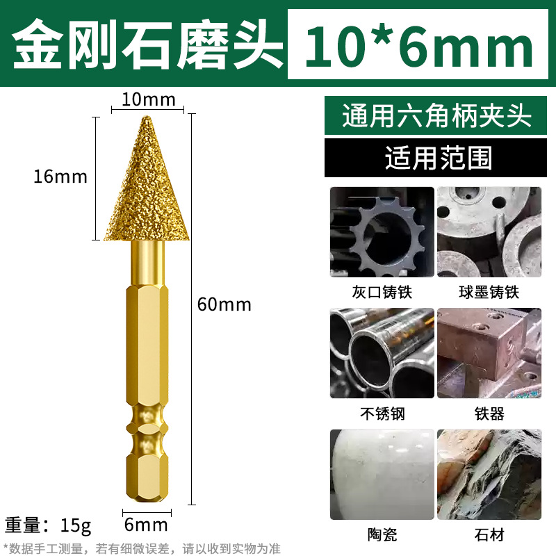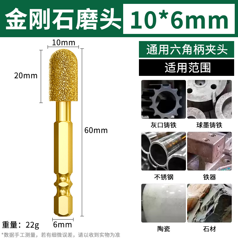 • [육각 손잡이] 브레이징 그라인딩 헤드 구형 그라인딩 헤드 10*6 (10개)