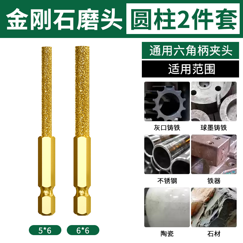 • [육각형 손잡이] 브레이징 그라인딩 헤드 소형 원통형 플랫 헤드 5*6