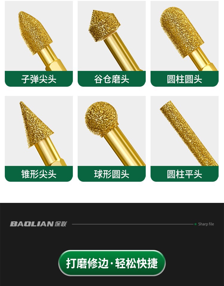 • [육각 손잡이] 브레이징 그라인딩 헤드(총알 머리 + 원통형 둥근 머리 + 뾰족한 머리 + 큰 원통형)